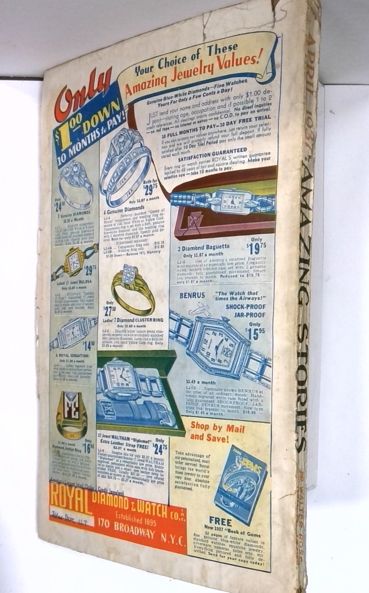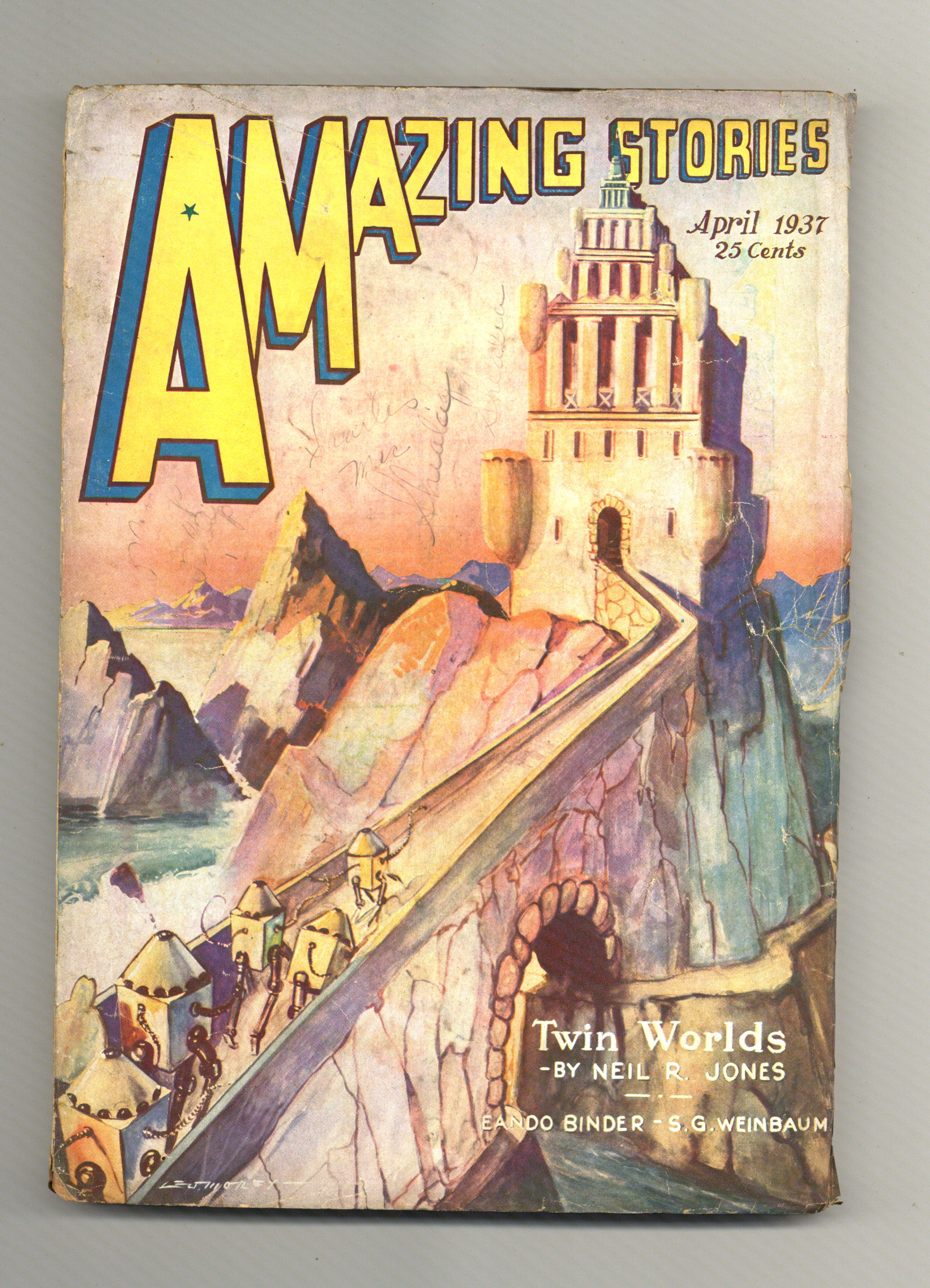 April 1937. Cover and illustrations by Leo Morey. Science fiction stories by Walter Rose, Neil R. Jones, Eando Binder, and "Shifting Seas" by Stanley G. Weinbaum. 6.75-in. x 9.75-in.; black and white; 144 newsprint pages Cover price $0.25.