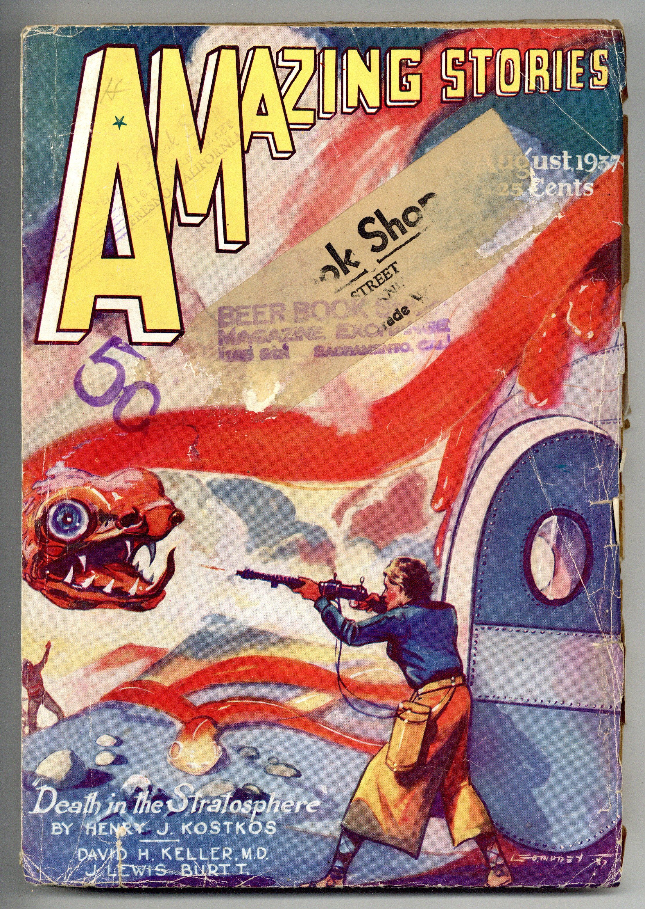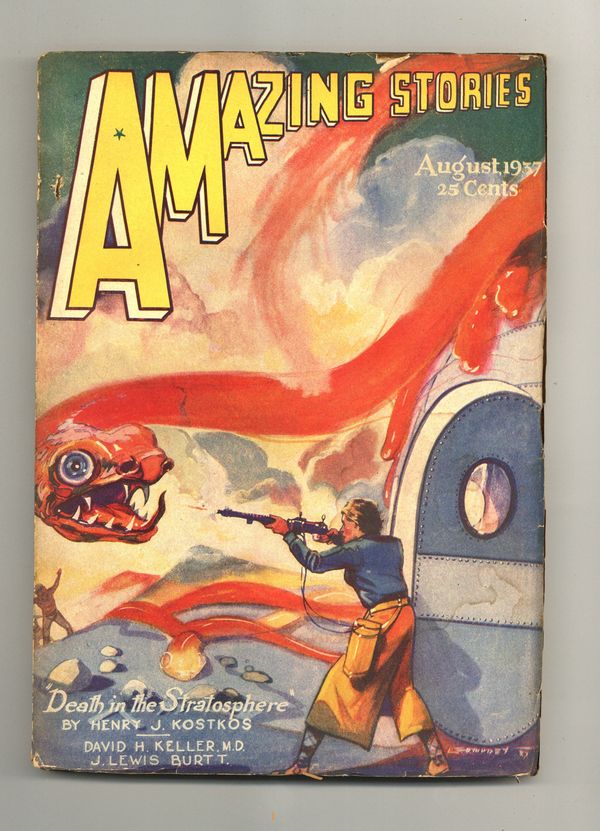 Aug 1937. Cover and illustrations by Leo Morey. Science fiction stories by David H. Keller, Henry J. Kostkos, J. Lewis Burtt, William Lemkin, and Richard Tooker. 6.75-in. x 9.75-in.; black and white; 144 newsprint pages Cover price $0.25.