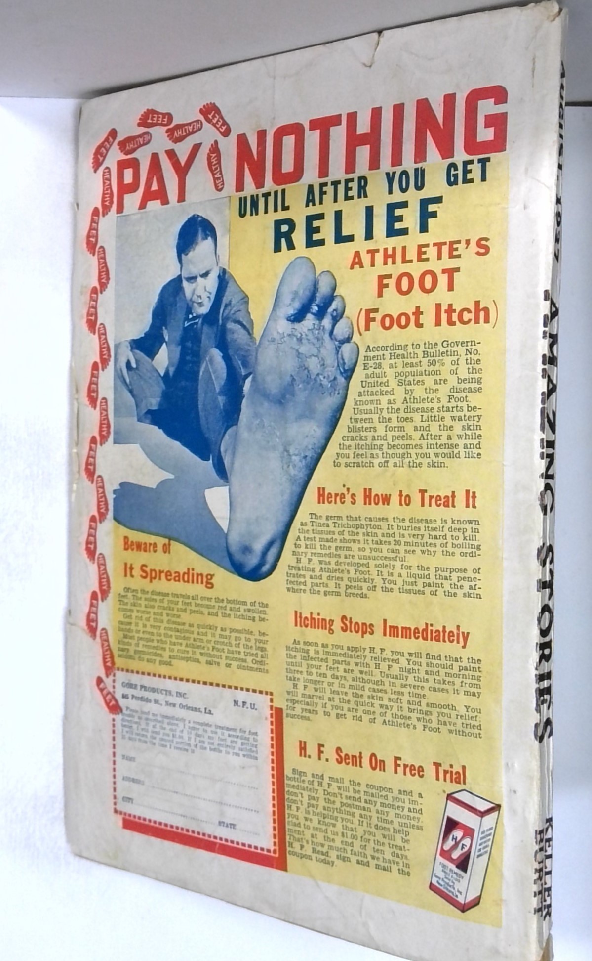 - Front cover detached 10%. Back cover detached 5%. Water damage: Slight. Staple rust: Slight.