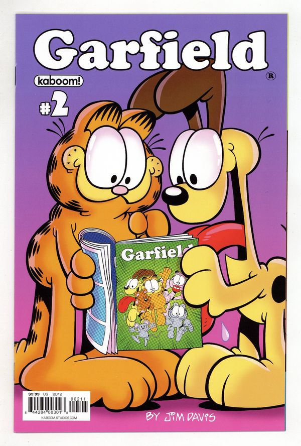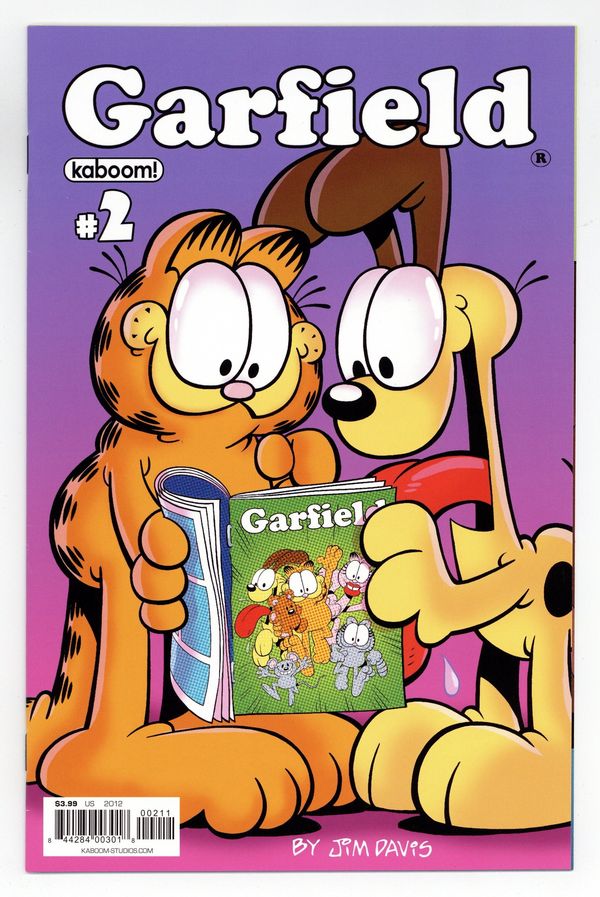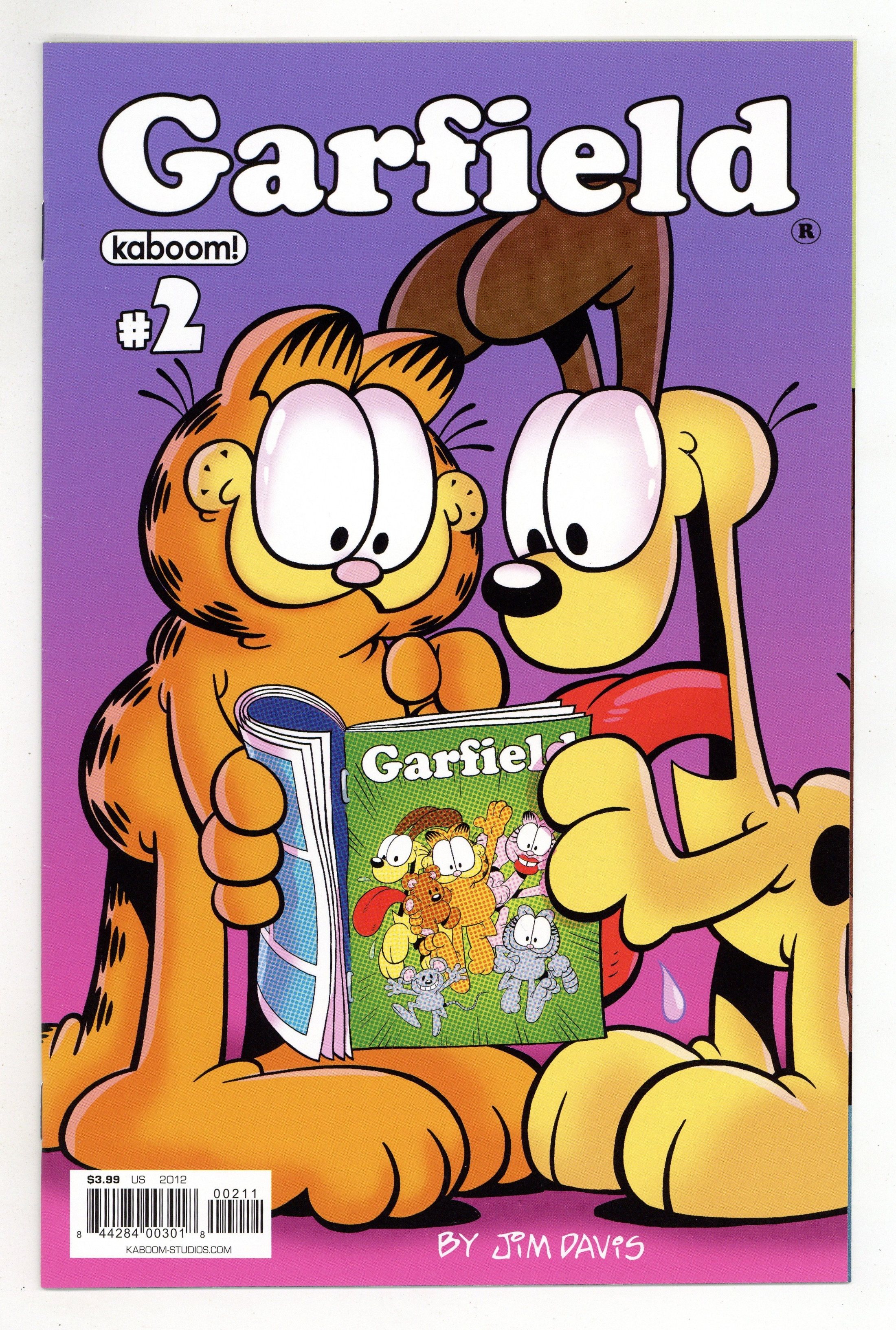 Published Jun 2012 by Boom Studios.$10.00Cover by Gary Barker (W) Mark Evanier (A) Gary Barker The Big Kitty's comic book extravaganza continues! Garfield, Odie, and the rest of the gang bring the fun and the funny in this all-new KaBOOM! series. What wacky schemes will Garfield come up with next? How will Jon embarrass himself with the ladies this time? There's only way to find out, so buy this comic! Cover price $3.99.