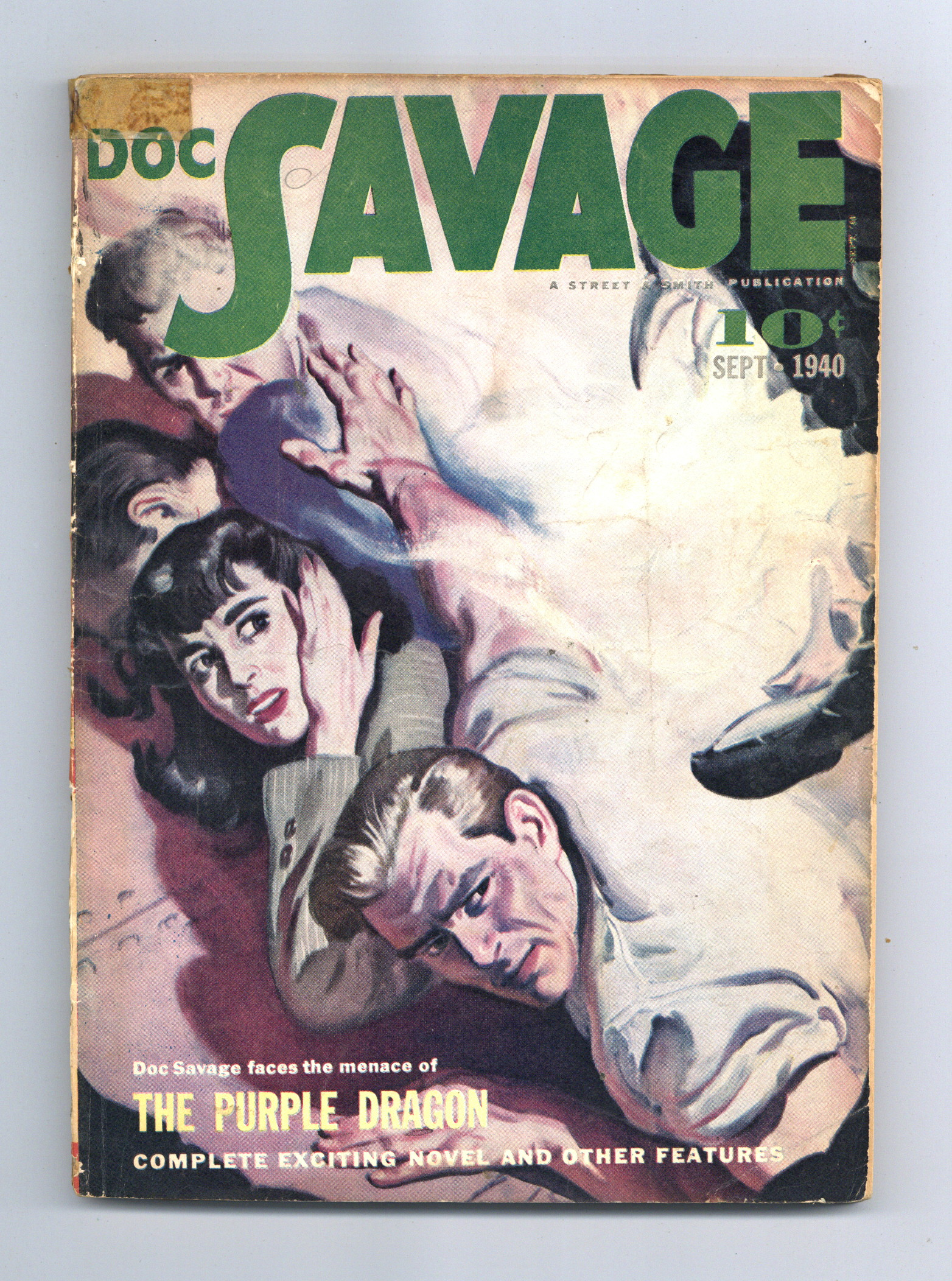 September 1940. Cover by Emery Clarke. Stories include "The Purple Dragon," a book-length novel by "Kenneth Robeson"; and "Shark Bait" by Wallace Brooker. 6.75-in x 9.25-in; black and white; 116 newsprint pages. Cover price $0.10.
