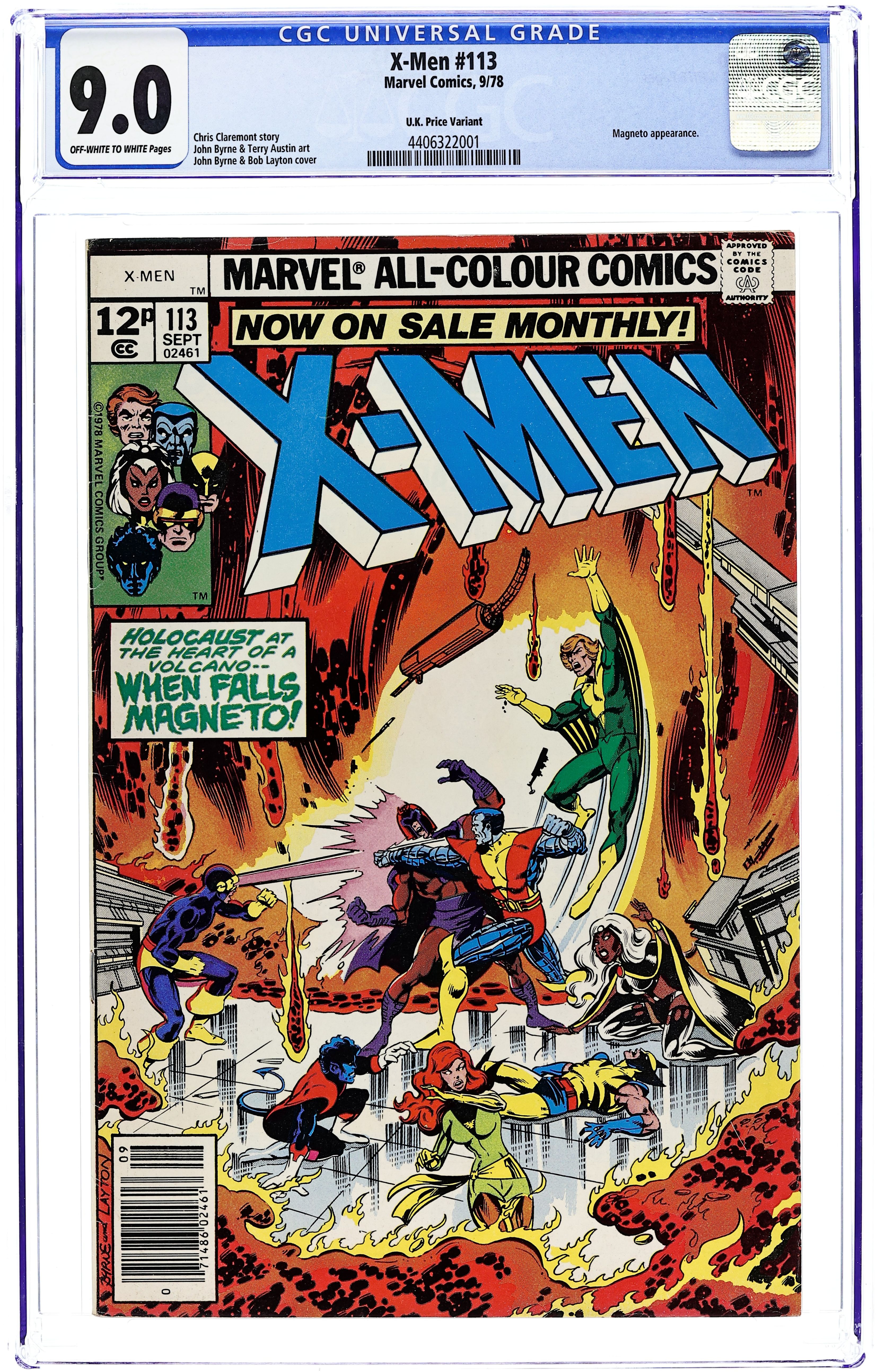UK edition. Identical to US edition, but has 12p cover price. "Showdown!" Part 3 of 3. Story by Chris Claremont and John Byrne. Art by John Byrne and Terry Austin. Don't miss the most unbelievable mutant showdown as the X-Men battle the Master of Magnetism himself aboard Magneto's orbiting satellite - Asteroid M! Even if Xavier's team of heroes can somehow find a way to defeat their enemy, how will they survive the harsh cold void of space? Plus, more secrets revealed about Storm's past.