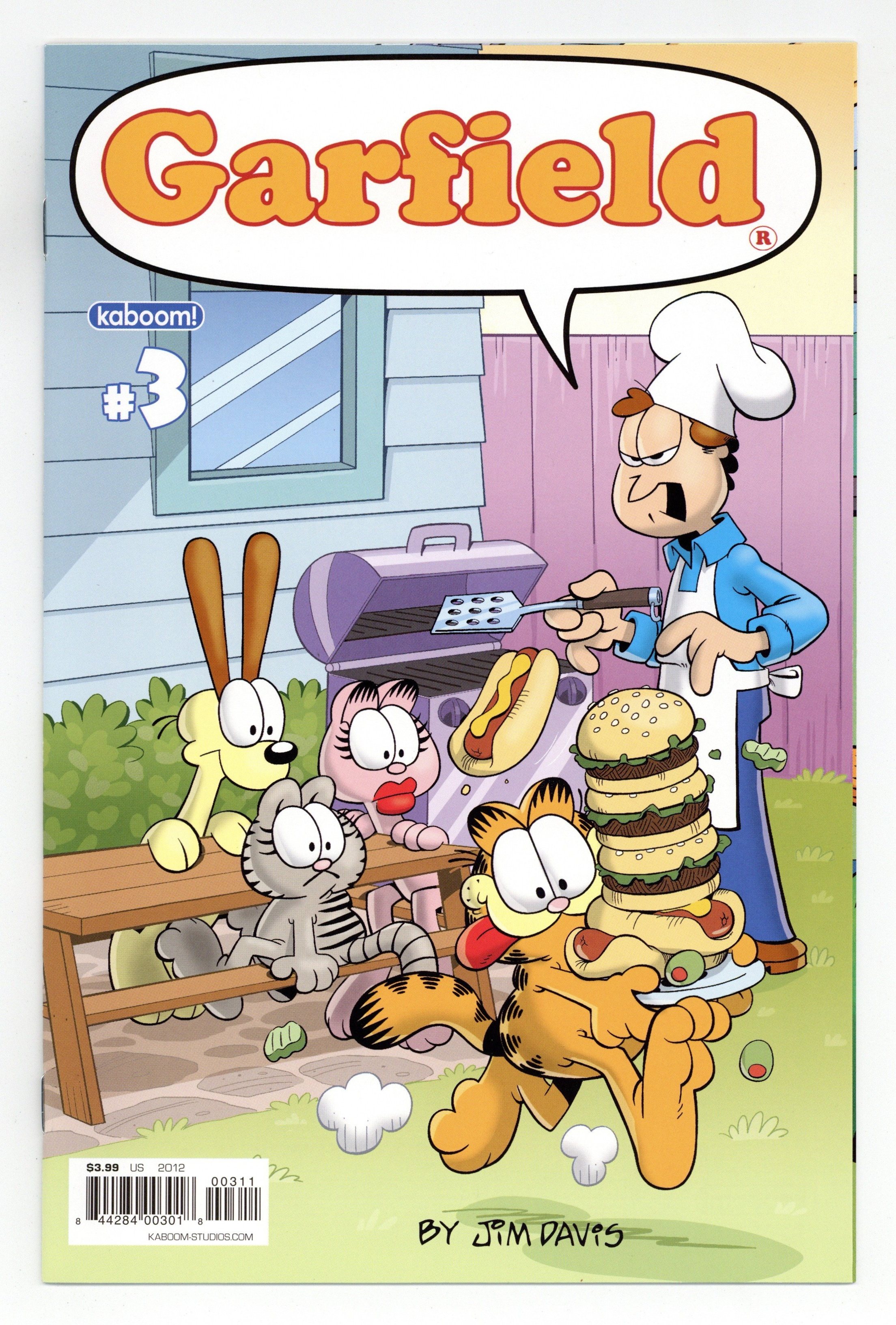 Published Jul 2012 by Boom Studios.$10.00(W) Mark Evanier (A/CA) Gary Barker The only thing better than a plate of lasagna is an all-new Garfield comic! We've got two hot & fresh stories coming your way from chefs Evanier & Barker, and well, we're getting hungry just thinking about it! As an extra treat this month, don't forget to ask your retailer about the limited edition Jon First Appearance Variant Cover! Cover price $3.99.