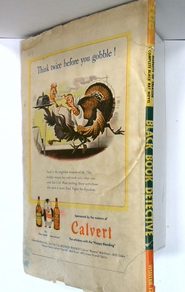 Winter 1944. Cover by Rudolph Belarski. The Black Bat in "Markets of Treason" by "G. Wayman Jones" (Norman Daniels); "Bataan Blood" by Jean Francis Webb; "Props for Murder" by Dixon Wells; and "Murder by Matchlight" by Jack O'Brien. Pulp magazine format; black and white; 96 newsprint pages. Cover price $0.10.