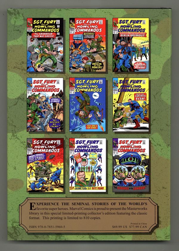 Volume 187 – 1st printing. "Sgt. Fury: Book 4!" Collects Sgt. Fury (1964-1981) #33-34. Written by ROY THOMAS. Art and cover by DICK AYERS. All right, ya goldbricks! Stand at attention and salute the good Sgt. Fury and his latest cache of World War II adventures brought to you by none other than the MARVEL MASTERWORKS! Your mission includes action on the Greek front, covert operations inside Berlin, incursions into Rommel's North African territory and a rendezvous with the French resistance - and that's just to shake the dust off. You'll also read the Howling Commandos' origin, meet a new member of the group in ex-Nazi Eric Koenig and face off with Colonel Klaue's crack Blitzkrieg Squad. It's war action in the mighty Marvel manner - so report for duty as requested, or it'll be permanent K.P. duty. Dismissed! Hardcover, 240 pages, full color. NOTE: Limited to 810 copies. Cover price $69.99.