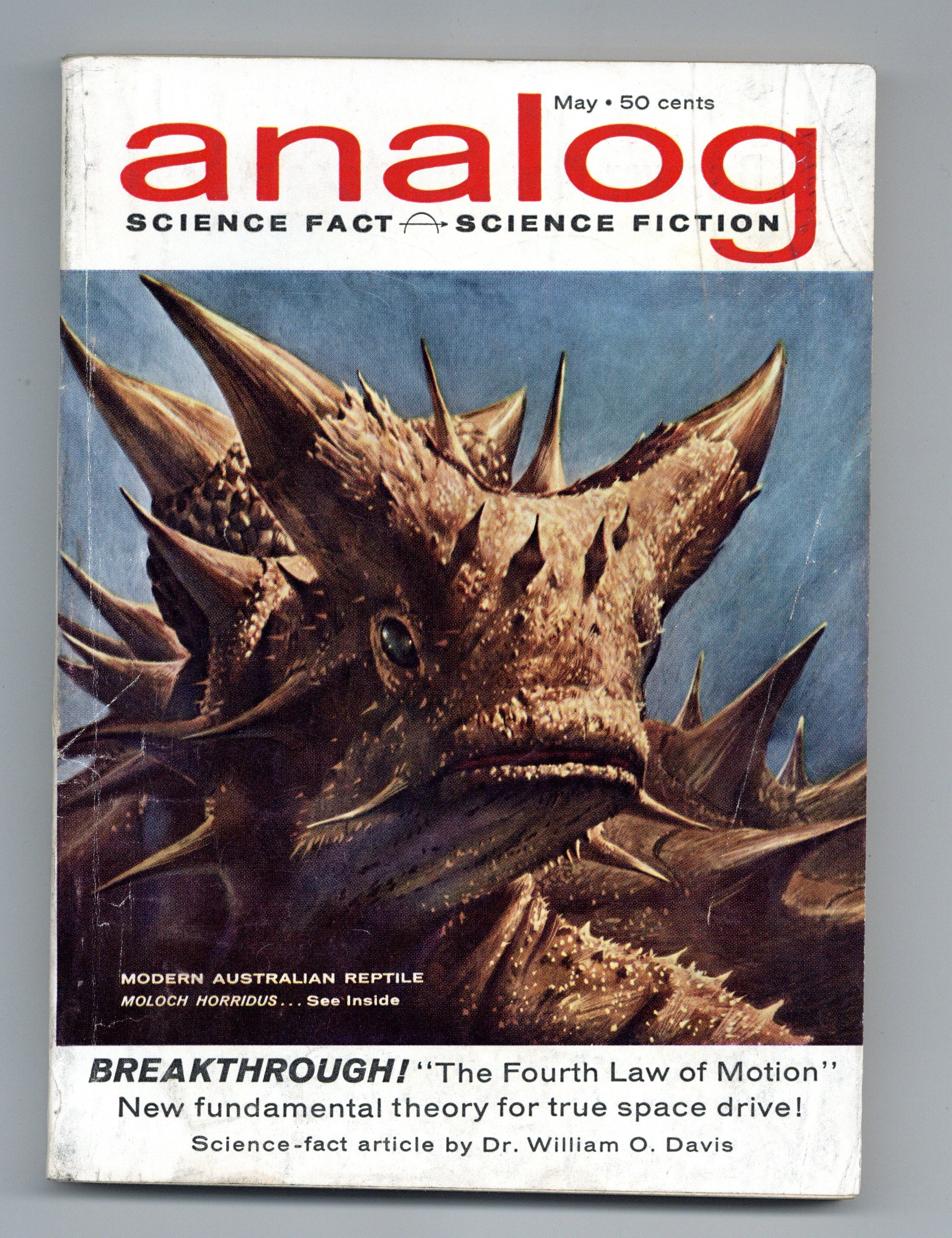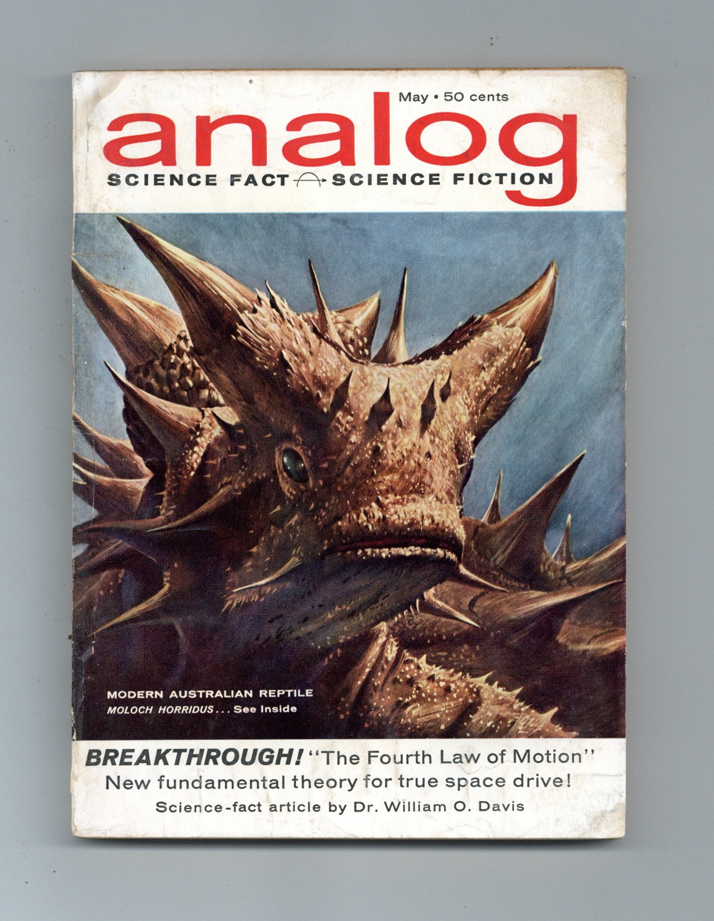 May 1962. Stories: "Anything You Can Do" (part 1) by Darrell T. Langart, "Nor Iron Bars" by Jonathan Blake MacKenzie, "The Next Logical Step" by Ben Bova, and "Sight Gag" by Larry M. Harris. Science Fact feature, "The Fourth Law of Motion" by William O. Davis. Cover by Schoenherr. Illustrations by Leone, Schelling, Schoenherr, and perhaps Krenkel. Softcover, 5.5-in. x 7.5-in.; 178 newsprint pages, B&W. Cover price $0.50.