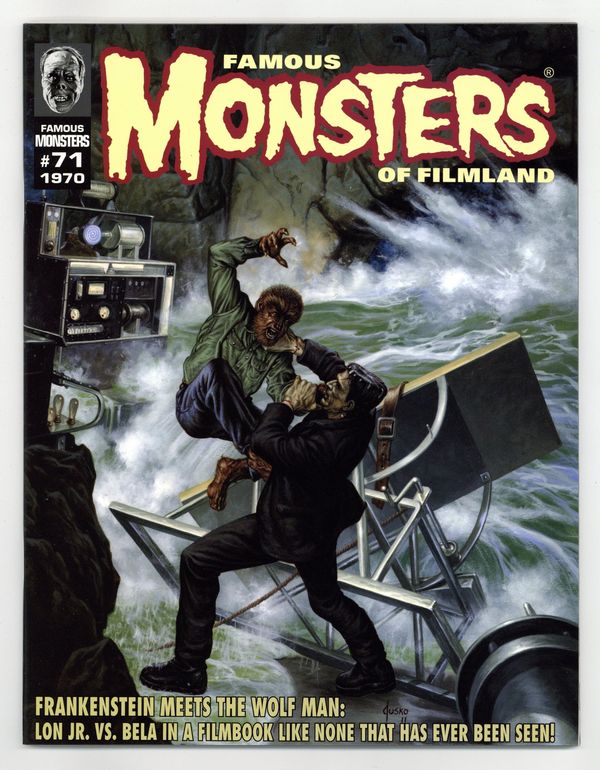 $38.00Continuing with the "lost" issues of Famous Monsters of Filmland, issue #71 will bring more of the classic style that made FM the iconic magazine it has become. This issue will feature an original Frankenstein vs. The Wolfman cover by artist Joe Jusko, with accompanying film book. Classic staples like The Graveyard Examiner, Professor Gruebeard, Mystery Photo, and "You Axed for It" will all be included, along with some of the best horror of the late 60s! Cover price $8.99.