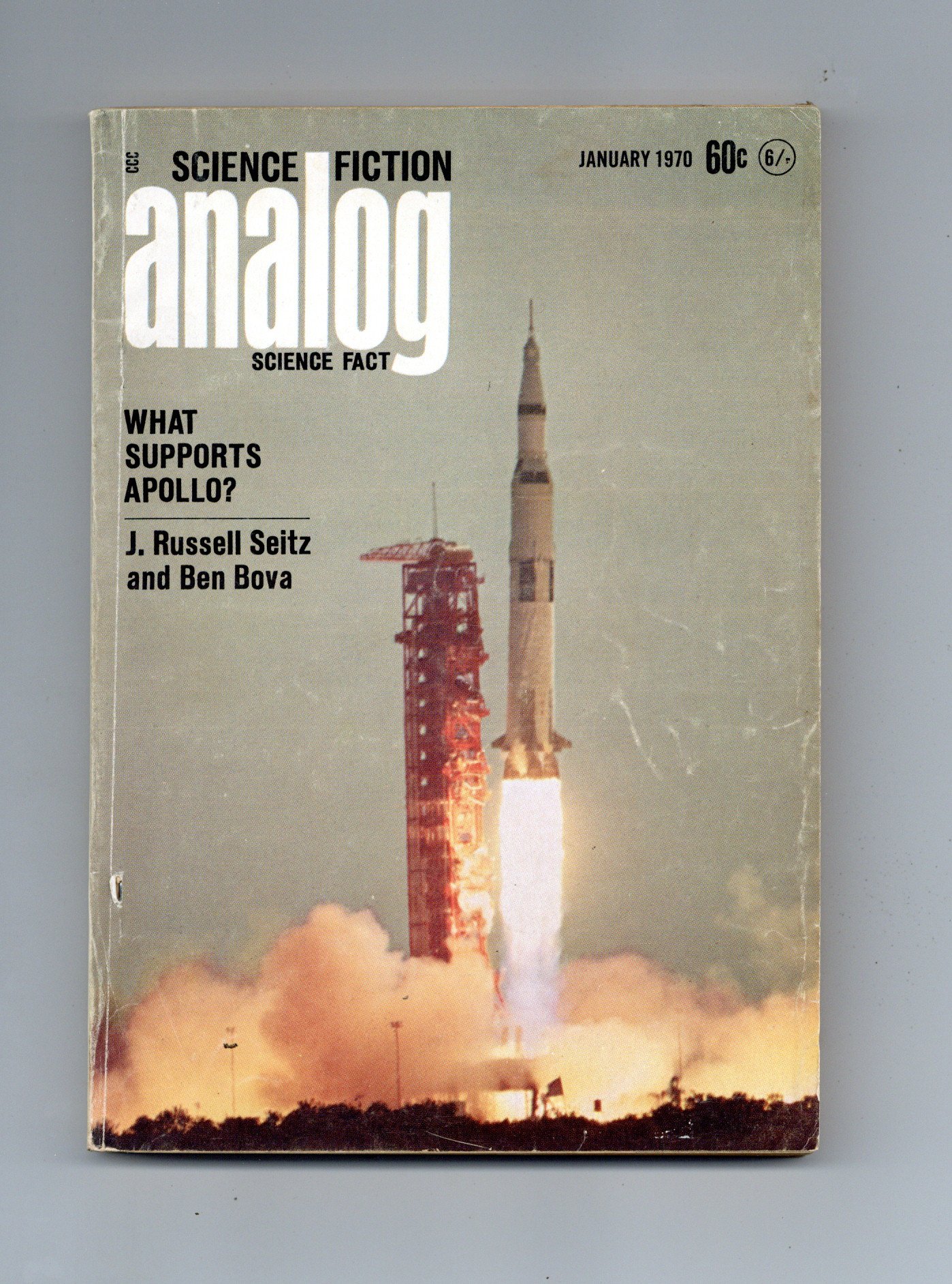 January 1970. Stories: "In Our Hands, The Stars" (part 2) by Harry Harrison, "The Wild Blue Yonder" by Robert Chilson, "Curfew" by Bruce Daniels, "The Pyrophilic Saurian" by Howeard L. Myers, and "The Proper Gander" by A. Bertram Chandler. Science Fact article, "What Supports Apollo?" by J. Russell Seitz and Ben Bova. Photo cover. Illustrations by Kelly Freas, Vincent DiFate, and Leo Summers. Softcover, 5.5-in. x 7.5-in.; 178 newsprint pages, B&W. Cover price $0.60.