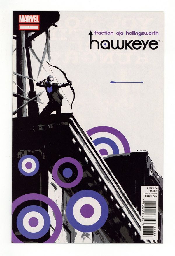Cover by David Aja (W) Matt Fraction (A) David Aja The breakout star of this summer's blockbuster AVENGERS film and self-made hero Hawkeye fights for justice! With ex-Young Avenger Kate Bishop by his side, he's out to prove himself as one of Earth's Mightiest Heroes! Matt Fraction & David Aja (IMMORTAL IRON FIST) reunite to tell the on-going tales of the Arrow-Avenger! Cover price $2.99.