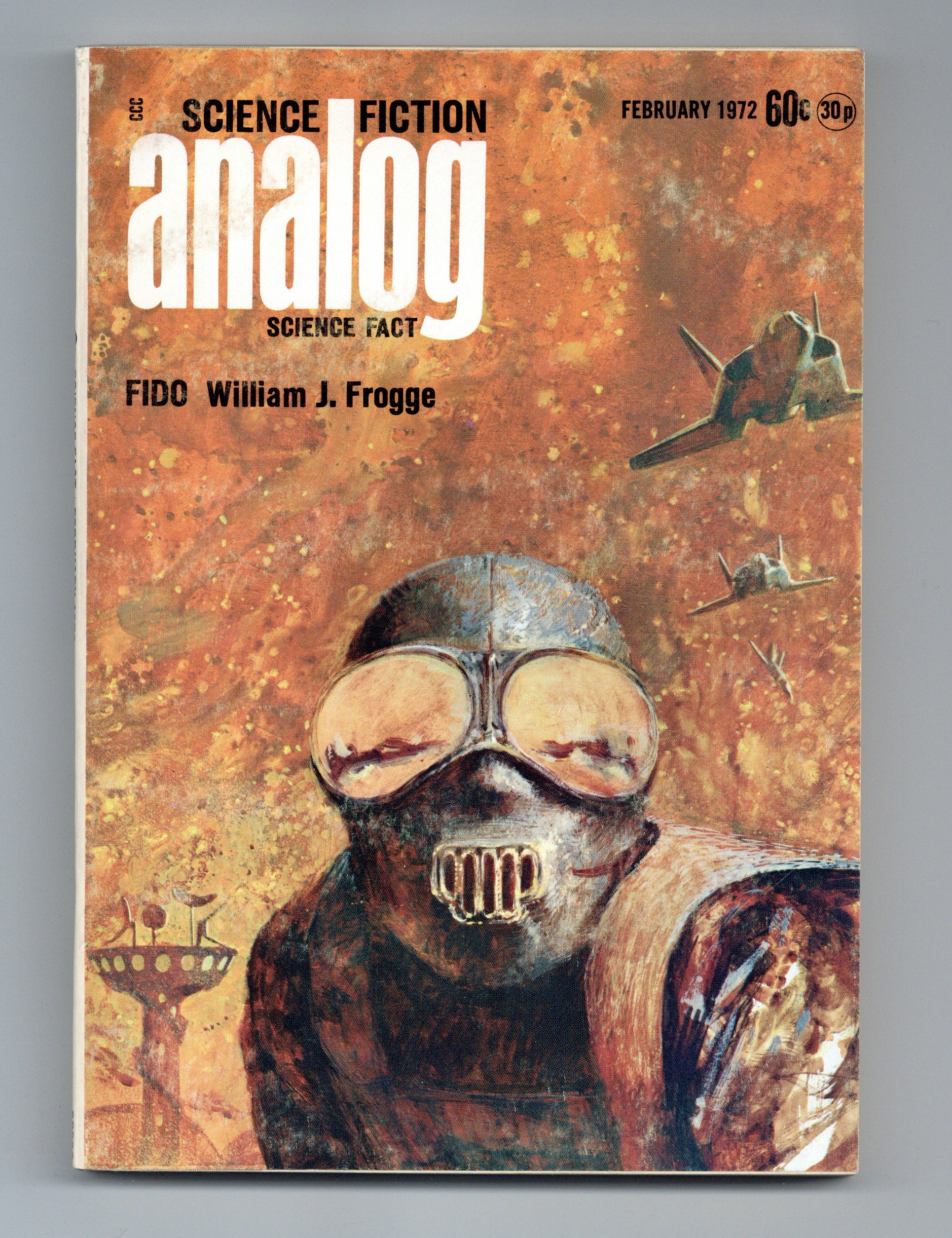 Published Feb 1972 by Dell Magazines.$10.50February 1972. Stories: "A Spaceship for the King" (conclusion) by Jerry Pournelle, "Fido" by William J. Frogge, "The Sword of Cain" by Henry Sauter, "Genesis 500" by Robert F. Young, and "One Man Game" by Joseph Green. Science Fact article, "When the Sky Falls" by Ben Bova. Cover by John Schoenherr. Illustrations by John Schoenherr and Kelly Freas. Softcover, 5.5-in. x 7.5-in.; 178 newsprint pages, B&W. Cover price $0.60.