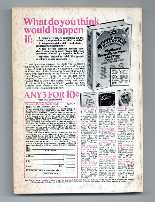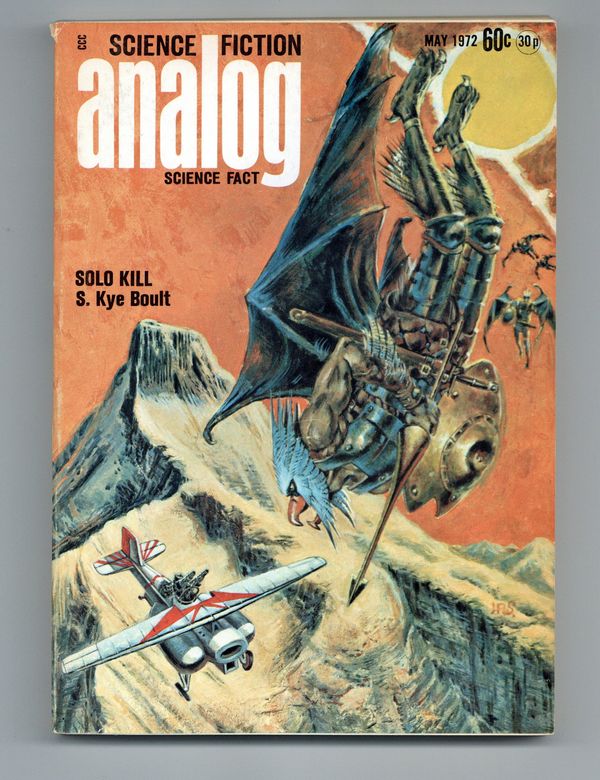Published May 1972 by Dell Magazines.$10.00May 1972. Stories: "A Transatlantic Tunnel, Hurrah!" (part 2) by Harry Harrison, "Solo Kill" by S. Kye Boult, "Lunchbox" by Howard Waldrop, "The Observer" by Clifford D. Simak, and "Mirror Image" by Isaac Asimov. Science Fact article, "Celestial Mechanics" by Rowland E. Burns. Cover by Leo Summers. Illustrations by Leo Summers and Kelly Freas. Softcover, 5.5-in. x 7.5-in.; 178 newsprint pages, B&W. Cover price $0.60.