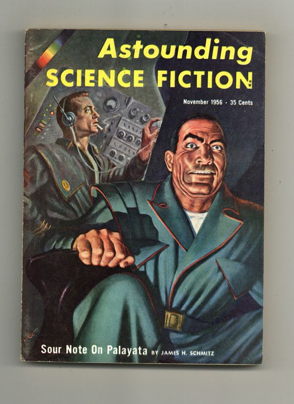 Published Nov 1956 by Street & Smith.$16.00November 1956 - Volume 58, Issue 3 - 1st printing. Science fiction stories: "Sour Note on Palayata" by James H. Schmitz, "With All the Trappings" by Randall Garrett, "The Doorstop" by R. Bretnor, "Sourdough" by Robert Silverberg and "The Naked Sun"(Part Two) by Isaac Asimov. Illustrations by Freas and van Dongen. Article on Planck's Constant by Poul Anderson. Cover by Freas. Softcover, 5.5-in. x 7.75-in.; 162 newsprint pages, B&W. Cover price $0.35.