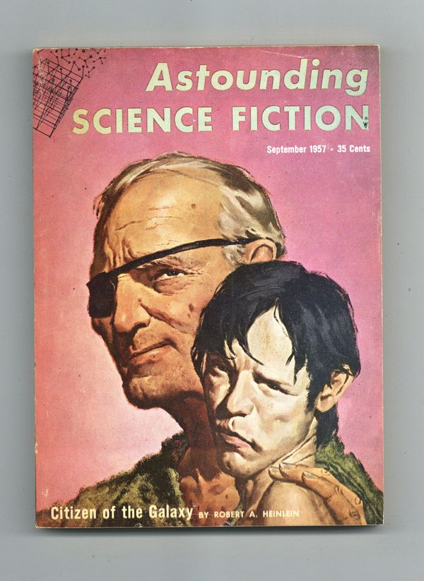 Published Sep 1957 by Street & Smith.$16.00September 1957 - Volume 60, Issue 1 - 1st printing. Science fiction stories: "Citizen of the Galaxy"(Part One) by Robert A. Heinlein, "Look Out! Duck!" by David Gordon, "Into Your Tent I'll Creep" by Eric Frank Russell, "Red River" by Dean C. Ing and "The Devil, You Say?" by Walter L. Kleine. Illustrations by Freas and van Dongen. Article on fusion. Cover by van Dongen. Softcover, 5.5-in. x 7.75-in.; 162 newsprint pages, B&W. Cover price $0.35.