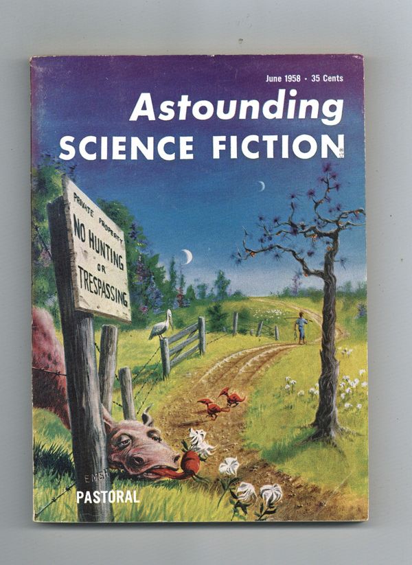 June 1958 - Volume 61, Issue 4 - 1st printing. Science fiction stories by Hal Clement ("Close to Critical" part 2), Robert Silverberg, Stanley Mullen, Randall Garrett, Theodore L. Thomas, and Hugh B. Brous Jr. Illustrations by Freas, Schoenherr, and van Dongen. Article on computers. Cover by Emsh. Softcover, 5.5-in. x 7.75-in.; 162 newsprint pages, B&W. Cover price $0.35.