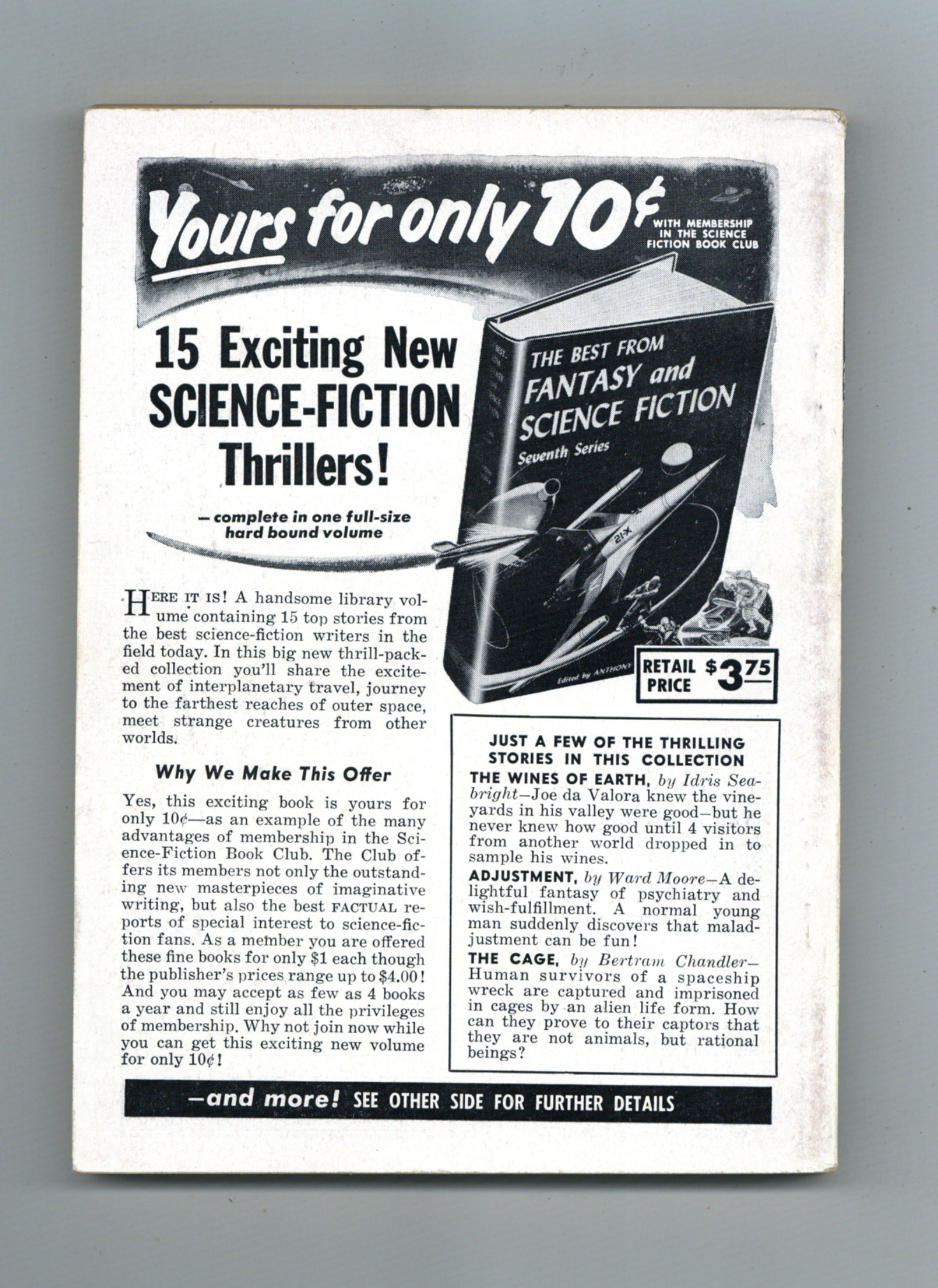 Published Jun 1958 by Street & Smith.$17.00June 1958 - Volume 61, Issue 4 - 1st printing. Science fiction stories by Hal Clement ("Close to Critical" part 2), Robert Silverberg, Stanley Mullen, Randall Garrett, Theodore L. Thomas, and Hugh B. Brous Jr. Illustrations by Freas, Schoenherr, and van Dongen. Article on computers. Cover by Emsh. Softcover, 5.5-in. x 7.75-in.; 162 newsprint pages, B&W. Cover price $0.35.