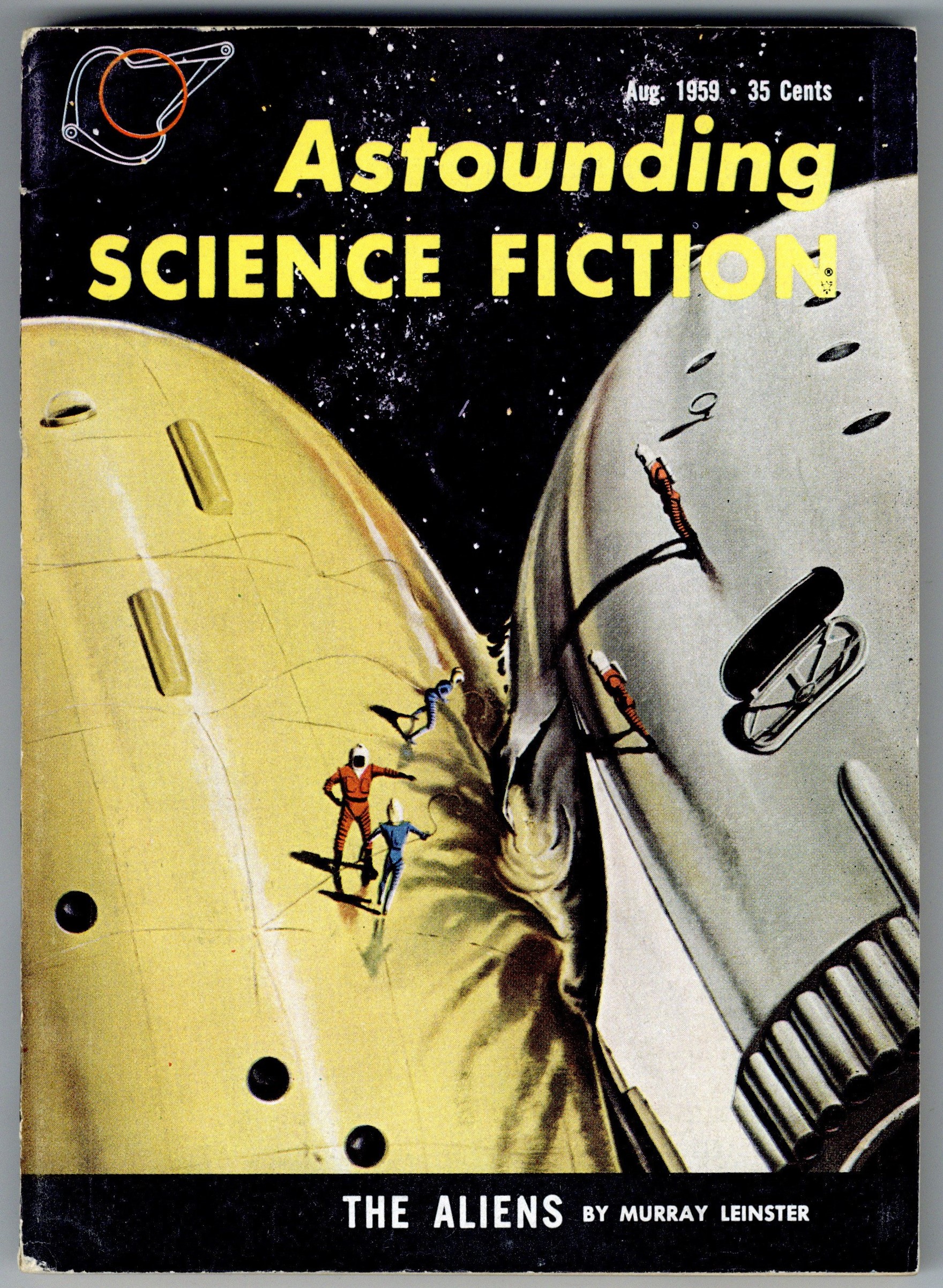 Mis-numbered Vol. 64 # 6 on contents page! August 1959 - Volume 63, Issue 6 - 1st printing. Science fiction stories by Murray Leinster, A. Bertram Chandler, George Whitley, Randall Garrett, Anne Walker, and Theodore L. Thomas. Illustrations by Freas, Bernklau, Martinez, Summers, and van Dongen. Cover by Freas. Softcover, 5.5-in. x 7.75-in.; 162 newsprint pages, B&W. Cover price $0.35.