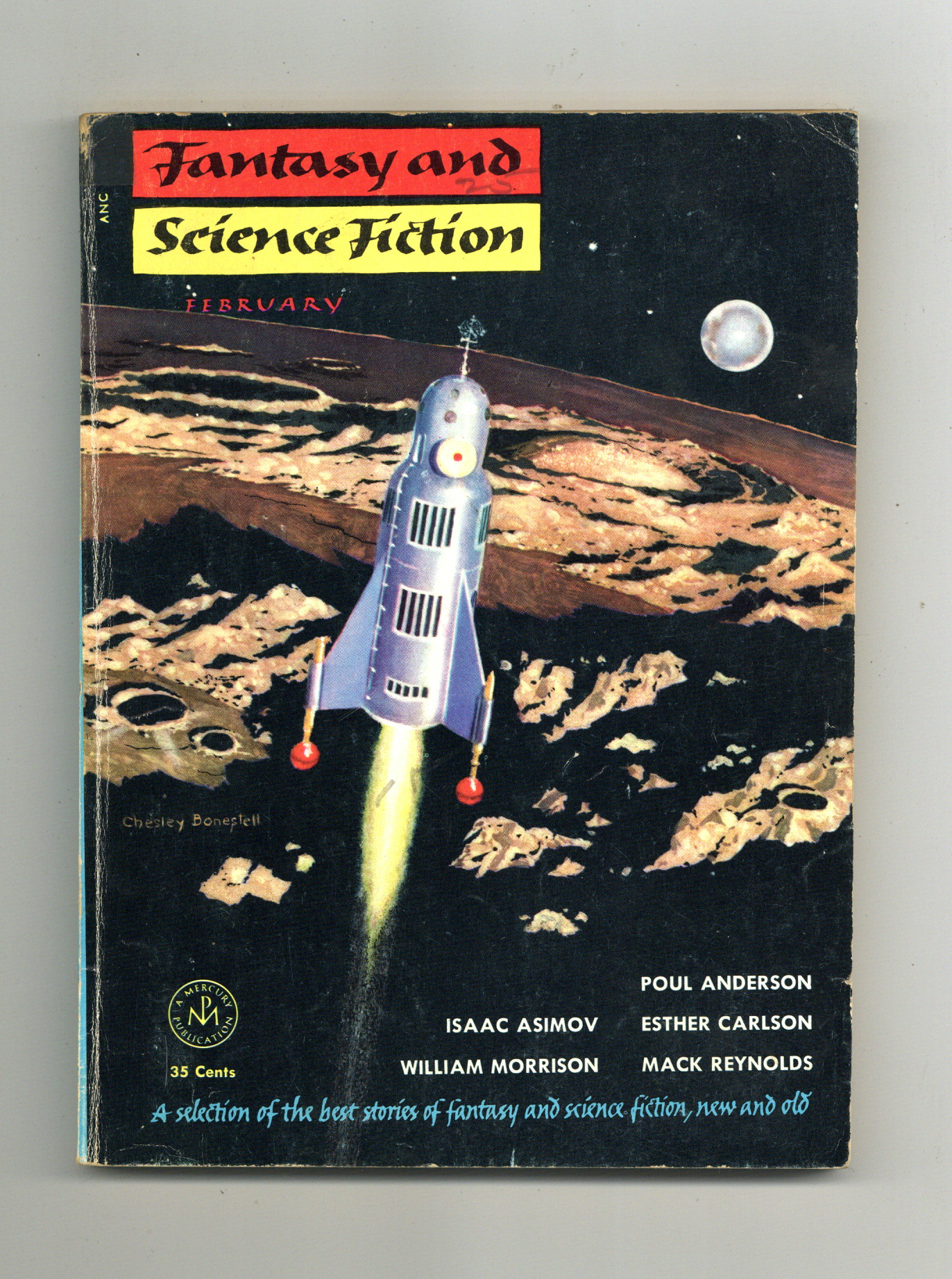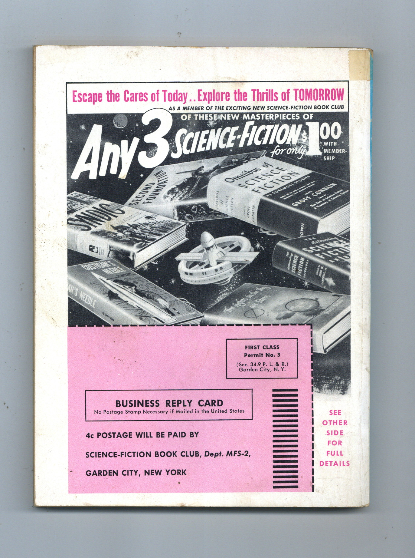 Published Feb 1954 by Mercury Publications.$7.20February 1954. Cover by Chesley Bonestell. Science fiction stories: "Playground" by William Morrison, "Somewhere East of Rudyard" by Esther Carlson, "c/o Mr. Makepeace" by Peter Phillips, "The Other Alternative" by Mack Reynolds, "Arrangement in Green" by Doris Gilbert, "The Miracle of the Broom Closet" by W. Norbert, "Sanctuary" by Daniel F. Galouye, "The Appraiser" by Doris P. Buck, "Call Me Adam" by Winston Marks, "The Immortal Game" by Poul Anderson, and "The Fun They Had" by Isaac Asimov. Softcover, 5.5-in. x 7.5-in.; 132 pages, B&W. Cover price $0.35.