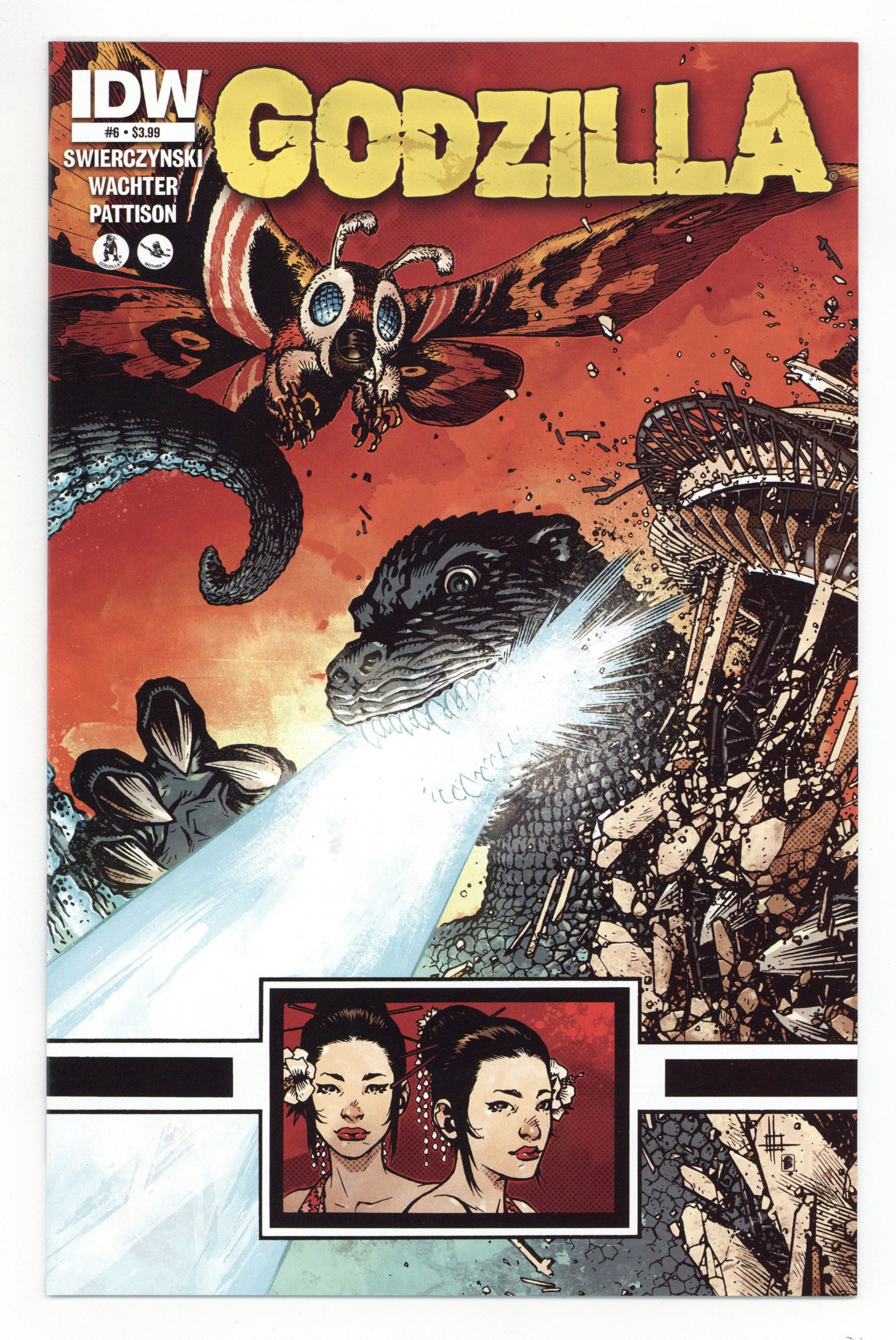Tags: GodzillaPublished Oct 2012 by IDW Publishing.$16.00Cover by Zach Howard. (W) Duane Swierczynski. (A) Dave Wachter. Having tasted serious defeat-and having been branded outlaws by the world's governments-Boxer and his crew scramble to catch up to Godzilla before he destroys Seattle! There's just one major obstacle in the way... Mothra! Cover price $3.99.