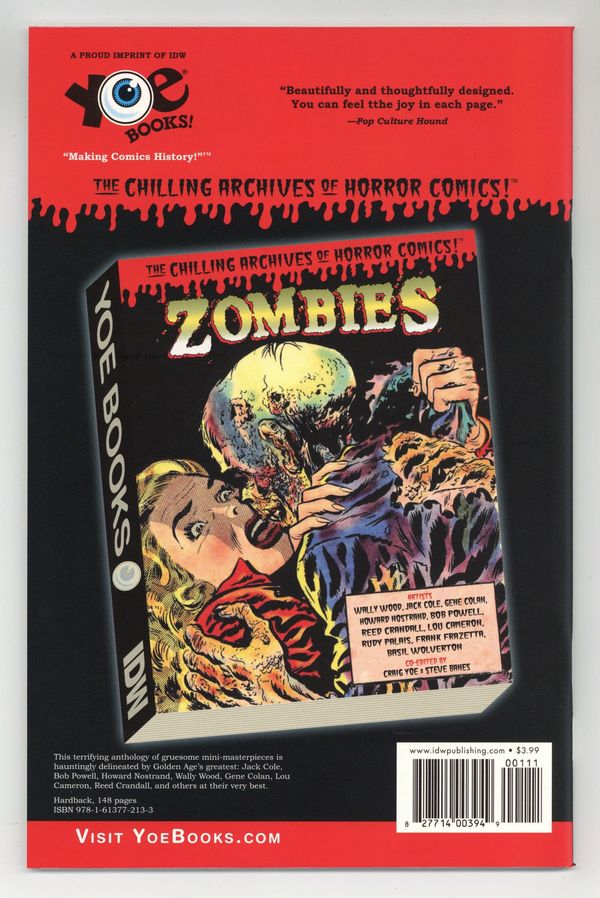 Published Oct 2012 by IDW Publishing.$42.00(A) Bob Powell & Various (CA) Lee Elias A comic so good it's...SCARY! Imagine you were a kid in the 1950s reading contraband horror comics under the bed covers by flashlight! You were devouring the very comic books you parents, your teachers and anti-comics crusader Dr. Fredric Wertham were trying to keep out of your hands! Now you can recreate that same experience, because the comics that were banned are back in actual comic-book format! The people that brought you Dick Briefer's Frankenstein, Bob Powell's Terror and Zombies are now producing a comic book series filled with the best of worst vintage horror comics that will rot your mind! Don't dare miss the first issue of Scary from the Chilling Archives of Horror Comics fiends! Cover price $3.99.
