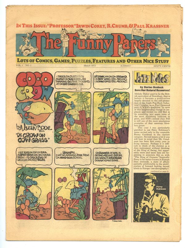 Tabloid size newspaper featuring comic strips of underground characters - Bo Bo Bolinski by Robert Crumb, Ezekiel Wolf by Ted Richards, Dr. Atomic by Larry Todd, Dreamz by Bruce Jones, Little Nemo by Winsor McCay, Paul Krassner, plus games, puzzles and more; all newsprint; 24 pages; mostly color/partial b&w. Cover price $0.60.