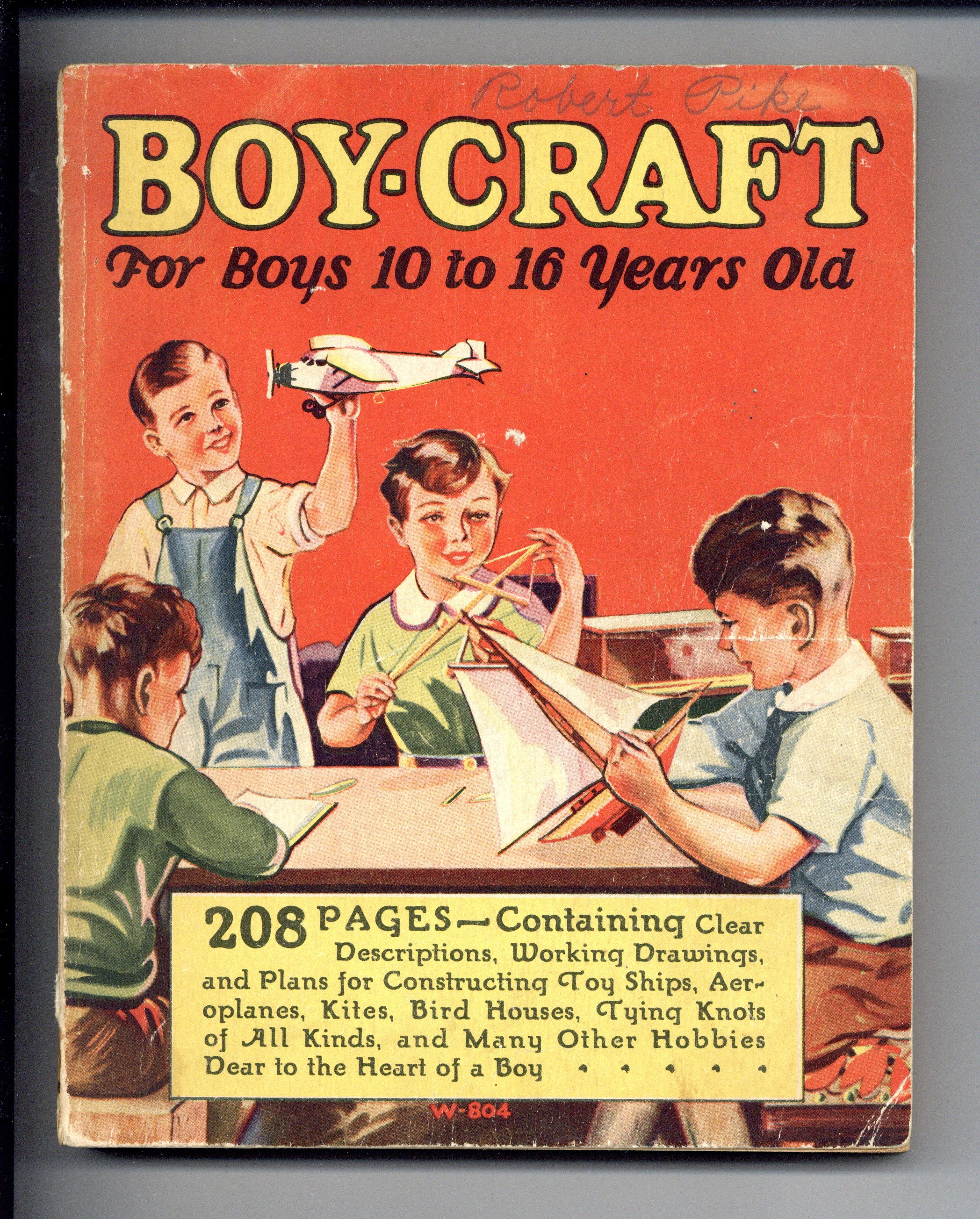 "For Boys 10 to 16 Years Old." This book will show you everything you need to construct your own toy ships, tie any knot known to man, plus tons of other way-cool craft ideas. Published by Whitman Publishing Company. W-804 printed on bottom of front cover. 208 pages; softcover/squarebound; illustrated; b&w, 6-in. x 7 3/4-in.
