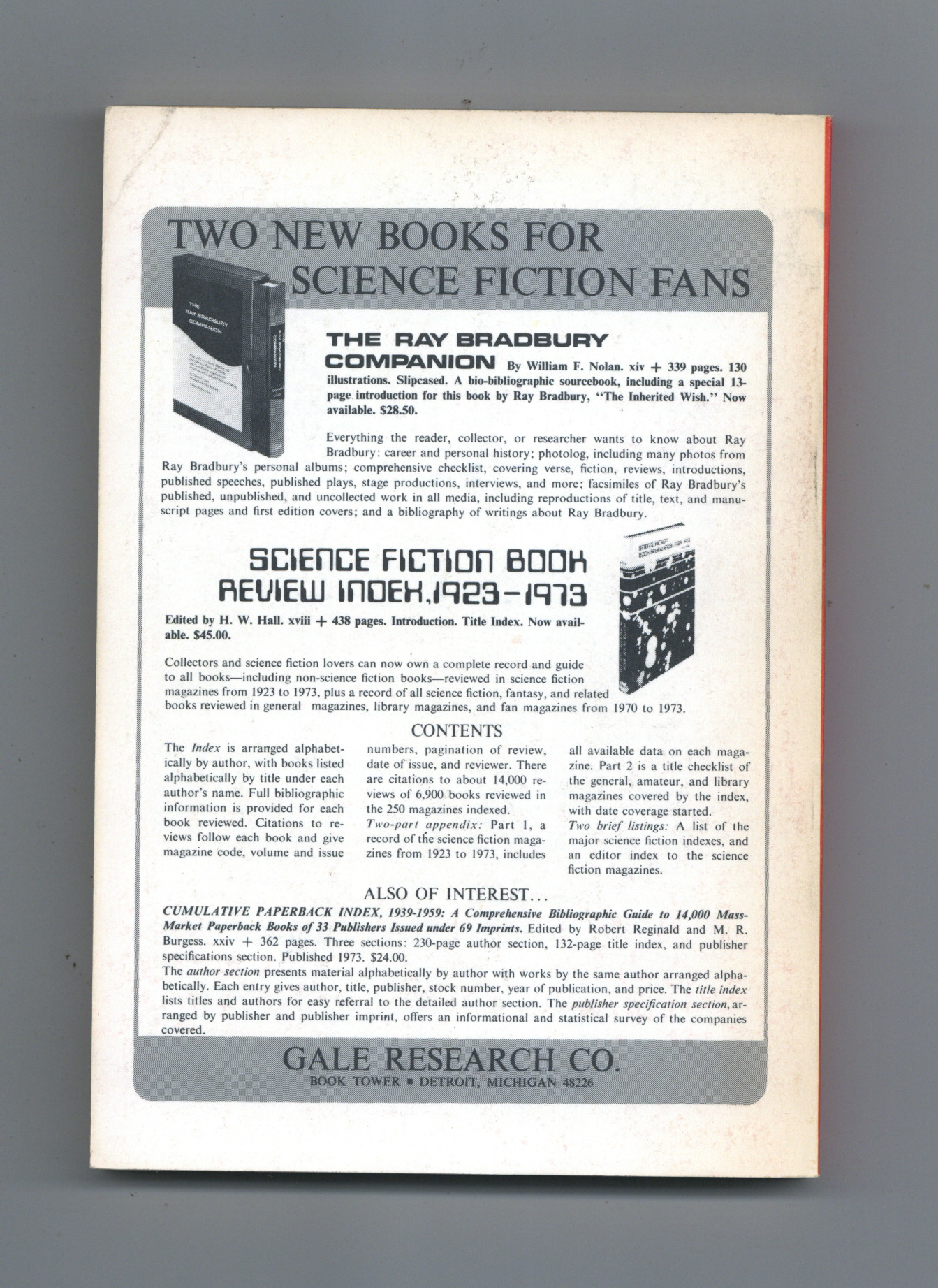Published Sep 1975 by Mercury Publications.$18.00September 1975; whole number 292. Science fiction stories: "Dream by Number" by Robert Thurston, "The Final Fighting of Fion Mac Cumhaill" by Randall Garrett, "The Problem of the Sore Bridge--Among Others" by Harry Manders, "No Way Home" by Brian Lumley, "Grandfather Clause" by Theodore R. Cogswell, "Valentino, Bogart, Dean, and Other Ghosts" by Raylyn Moore and John Penny, and "The Runners" by George R.R. Martin. Cartoon by Gahan Wilson. Science article by Isaac Asimov. Book reviews of H.P. Lovecraft's work. Cover by Mazey & Schell. 5-in. x 7-in., black and white; 160 pages. Cover price $1.00.