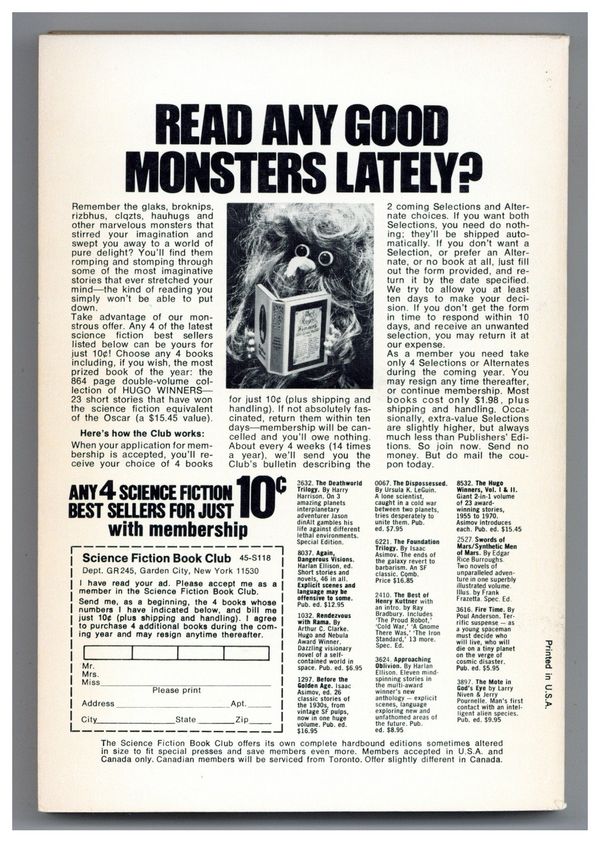 Science fiction stories: "The Eternity Engine" by Jack Williamson, "The Venging" by Greg Bear, "Elephant with Wooden Leg" by John Sladek, "Let Darkness Fall" by Hartmann, "The Yidam" by Herbie Brennan, and "Helium" (part 2) by Arsen Darnay. Illustrations by Jack Gaughan, Freff, and Wendy Pini. Cover by Wendy Pini. 5-1/8 in. x 7-5/8 in.; black and white; 160 newsprint pages. Cover price $1.00.