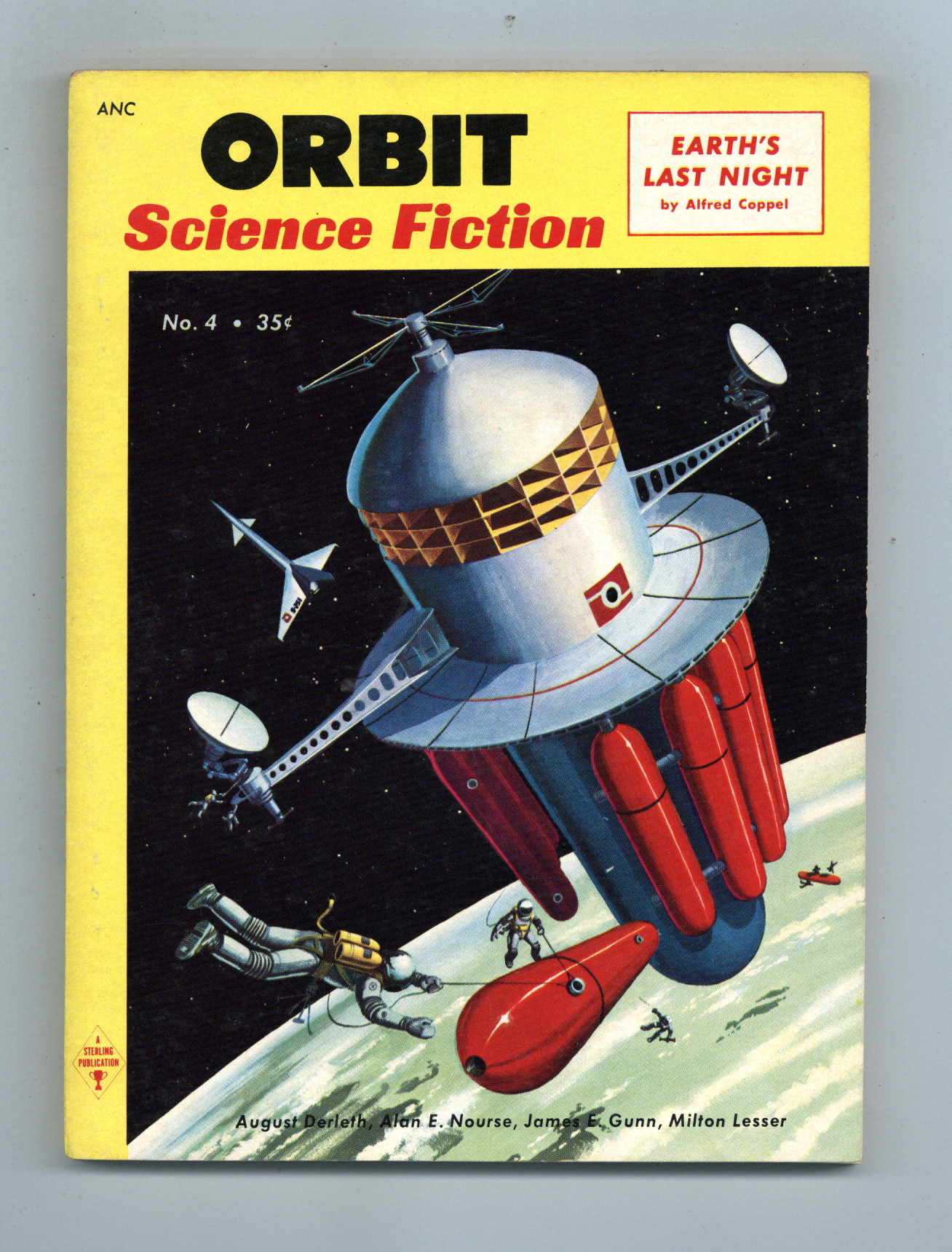 September-October 1954. Science fiction stories: "Adjustment Team" by Philip K. Dick (inspiration for the movie "Adjustment Bureau"), "Last Night of Summer" by Alfred Coppel, "Beast in the House" by Michael Shaara, "Danger Past" by James E. Gunn, "Me Feel Good" by Max Dancey, "No More the Stars" by Irving E. Cox Jr., "The Thunker and the Thought" by August Derleth, "The Image of the Gods" by Alan E. Nourse, and "Intruder on the Rim" by Milton Lesser. Illustrations by Faragasso, Berwin, and others. 5-1/2 in. x 7-3/8 in.; black and white; 128 newsprint pages. Cover price $0.35.