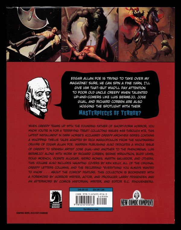 When Creepy teams up with Edgar Allan Poe, you know you're in for a terrifying treat! The latest volume includes a whopping twelve tales adapted from the founding father of short-form horror himself and features work by Richard Corben, Bernie Wrightson, Luis Bermejo, José Gual, and others!