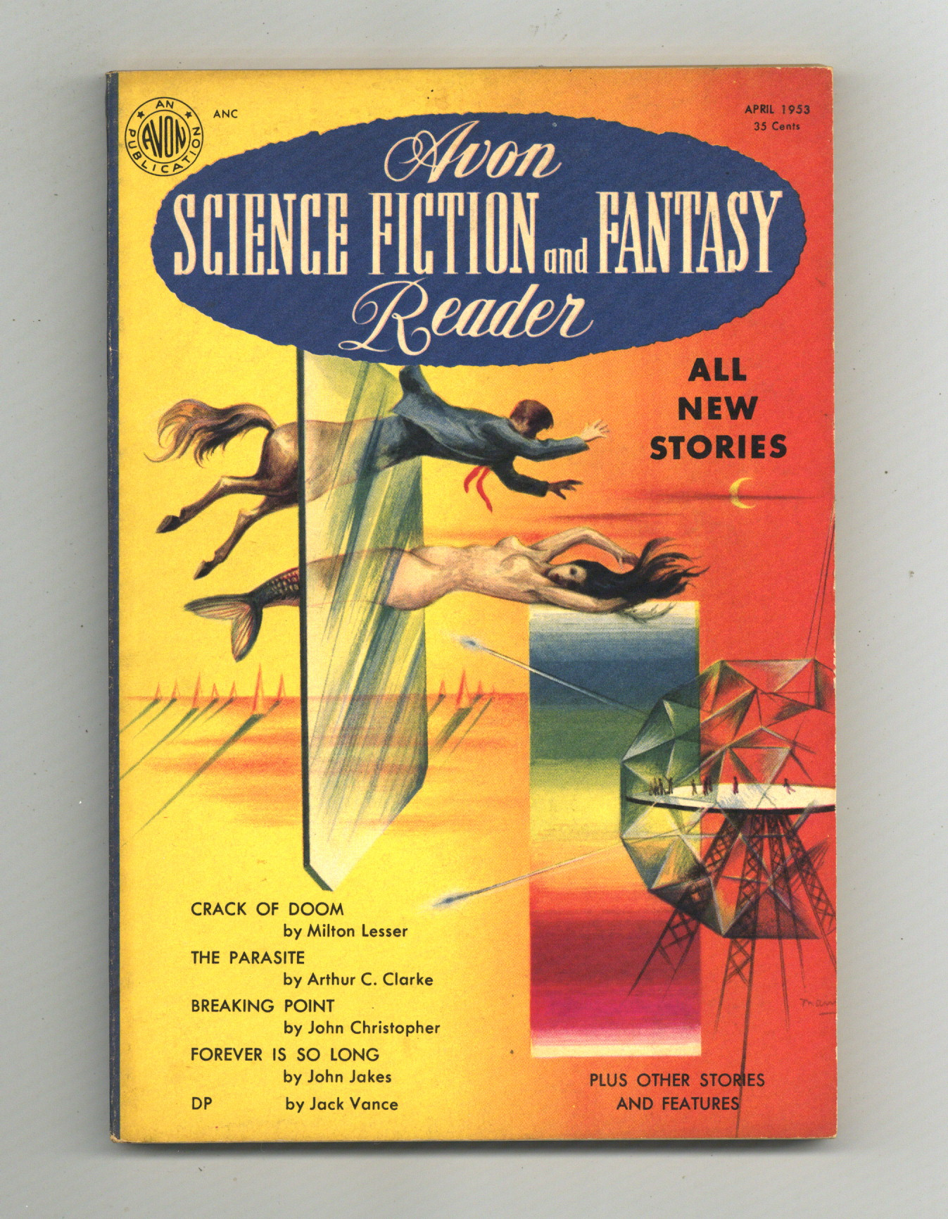 Published Mar 1953 by Avon Publications.$135.00March 1953. Cover by Leo Manso. Edited by Sol Cohen. Stories by Jack Vance, Irving Cox, Jr., Arthur C. Clarke, Kris Neville, John Christopher, Noah Gordon, Milton Lesser, John Jakes, and R. S. Richardson. Art by Everett Raymond Kinstler, John Giunta, Norman Nodel, Gerald McCann, and Mort Lawrence. One of Avons experiments with combining pulp magazines and comics, this is a merger of two previous Avon digest-format magazines, Avon Fantasy Reader and Avon Science Fiction Reader. DP!; The Rather Improbable History of Hiliary Kiffer; Survivor; Breaking Point; As Holy and Enchanted; Hunt the Red Roe; Crack of Doom; Book reviews; The Agent; Forever is So Long; A Night on Mars Hill; The Parasite. 5-in. x 7.5-in., 128 pages, B&W. Cover price $0.35.