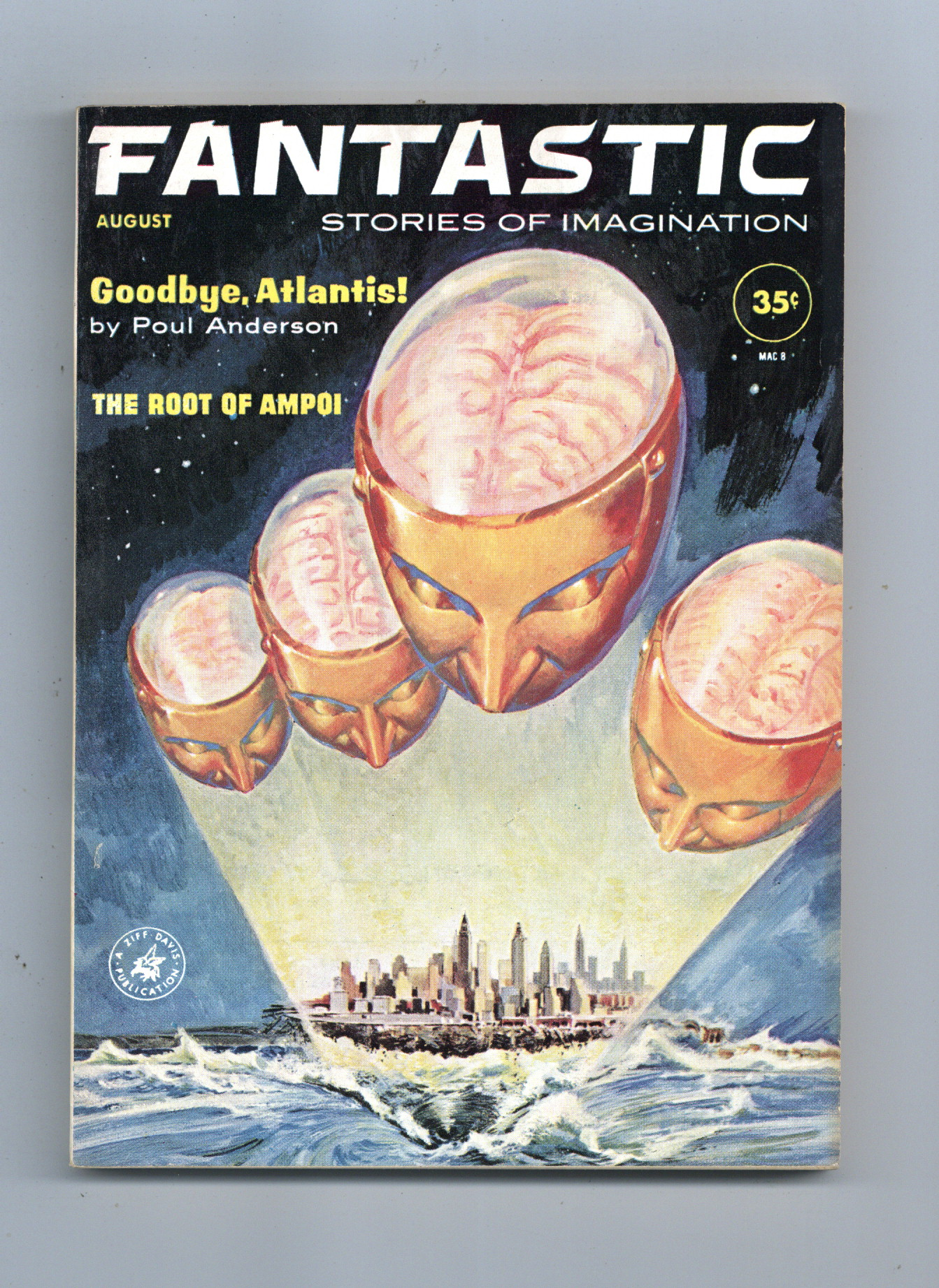 Published Aug 1961 by Ziff Davis.$10.00Aug 1961. Cover by Leo Summers. Science fiction and fantasy stories by Poul Anderson, Keith Laumer, Theodore L. Thomas, Clark Ashton Smith, Jack Sharkey, Arthur Porges, and Henry Slesar. Illustrations by Finlay, West, Adkins, Ivie, and Summers. 5.5-in. x 7.75-in.; black and white; 128 newsprint pages. Cover price $0.35.