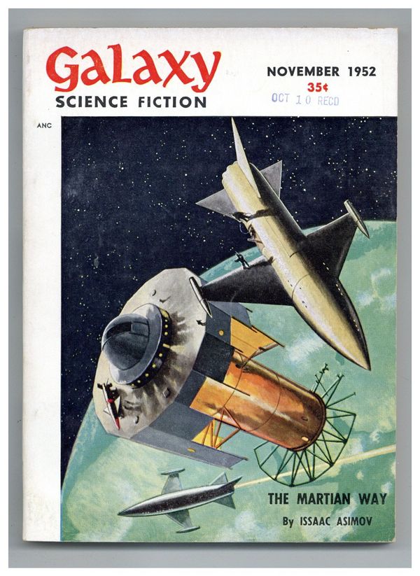 Published Nov 1952 by Galaxy Publications.$20.50November 1952. Cover by Jack Coggins. Stories: "The Martian Way" by Isaac Asimov, "Sugar Plum" by R. Bretnor, "Command Performance" by Walter M. Miller, Jr., "Warrior Race" by Robert Sheckley, "A Thought for Tomorrow" by Robert E. Gilbert, "The Altar at Midnight" by C. M. Kornbluth, "The Misogynist" by James E. Gunn, and "Runaway" by William Morrison. 5.25-in. x 7.5-in.; 160 Pages, B&W. Cover price $0.35.