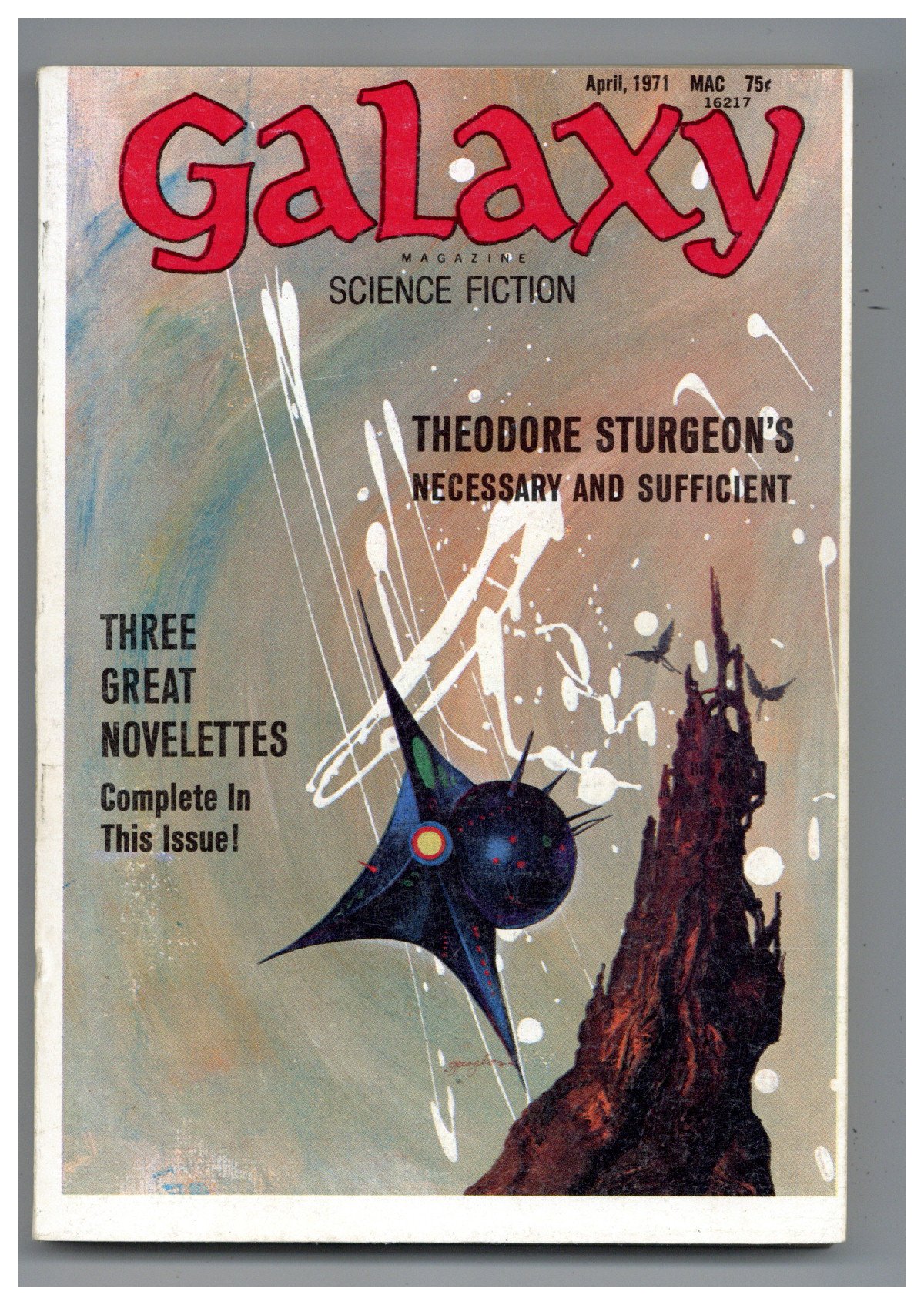 Published Apr 1971 by Galaxy Publications.$12.00April 1971. Cover by Jack Gaughan. Science fiction stories by Joe W. Halderman, Duncan Lunan, Gordon Eklund, Robert Silverberg's "A Time of Changes" Part 2, Theodore Sturgeon, Ernest Taves, and J. R. Pierce. 5-1/4-in. x 7-1/4-in.; b&w text with spot illustrations; 192 newsprint pages. Cover price $0.75.