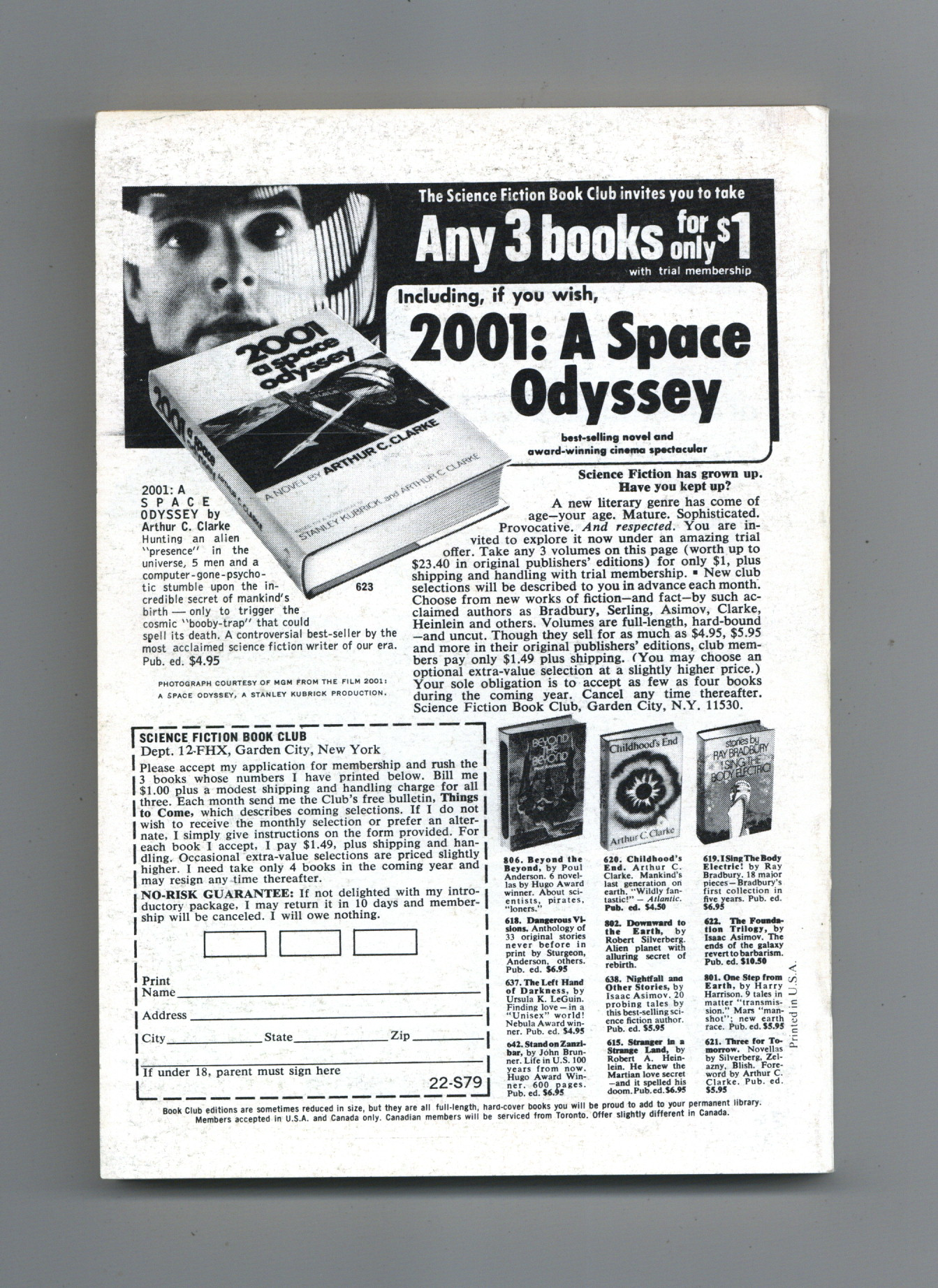 Published Feb 1971 by Quinn Publishing Co..$2.65Jan-Feb 1971. Volume 20, No. 9 (Whole No. 152). Cover by Gaughan. Science fiction stories by T. J. Bass, Keith Laumer, Sterling E. Lanier, Hayden Howard, R. A. Lafferty, Michael G. Coney, George C. Willick, Gerard Rejskind, Richard E. Peck, Lee Harding, and John Sladek. 5.25-in. x 7.5-in.; black and white; 192 newsprint pages. Cover price $0.75.