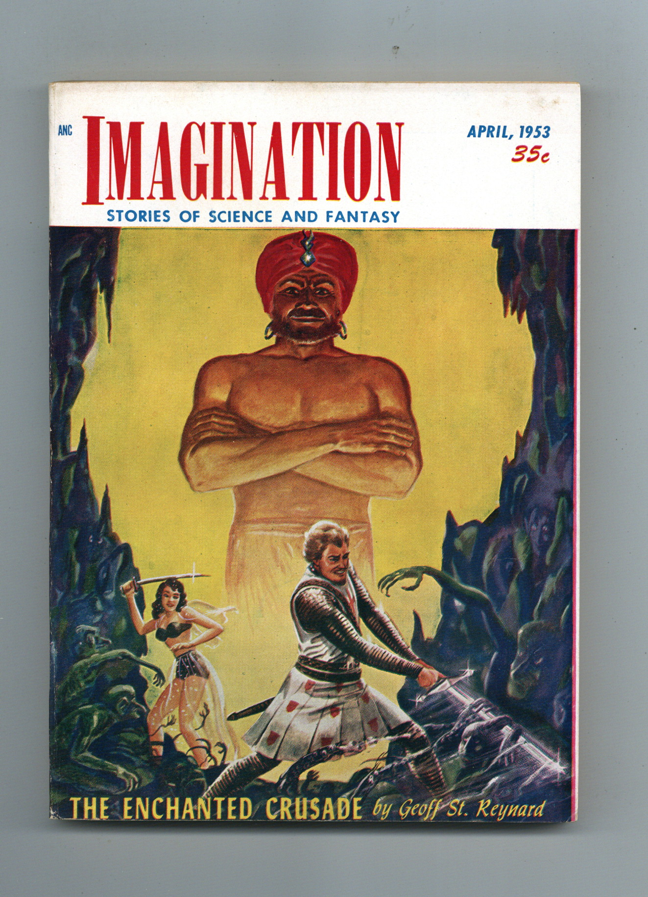 Published Apr 1953 by Greenleaf Publishing.$12.00April 1953. Cover by W. E. Terry. Science fiction stories by Geoff St. Reynard, Richard S. Shaver, Rog Phillips, Daniel F. Galouye, Dave Dryfoos, and Louis G. Daniels. Illustrations by W. E. Terry and H. W. McCauley. 5-3/8 in. x 7-5/8 in; black and white; 162 pages. Cover price $0.35.