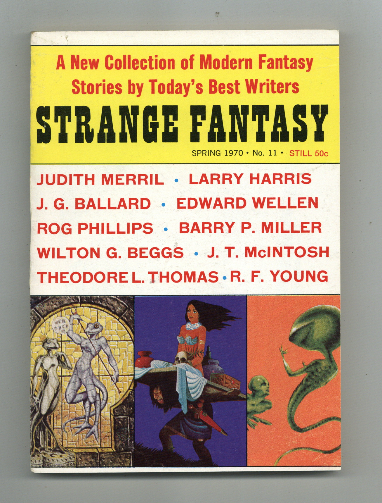 Published Mar 1970 by Ultimate Publishing Company.$28.00Spring 1970. Reprints Pulp Fantasy stories by Judith Merril, Larry Harris, J. G. Ballard, Edward Wellen, Rog Phillips, Barry P. Miller, Wilton G. Beggs, J. T. McIntosh, Theodore L. Thomas, and R. F. Young. Illustrations by Robert Adragna, Domeri, Virgil Finlay, and Leo Summers. 5 3/8-in. x 7 1/2-in.; black and white; 130 pages. Cover price $0.50.