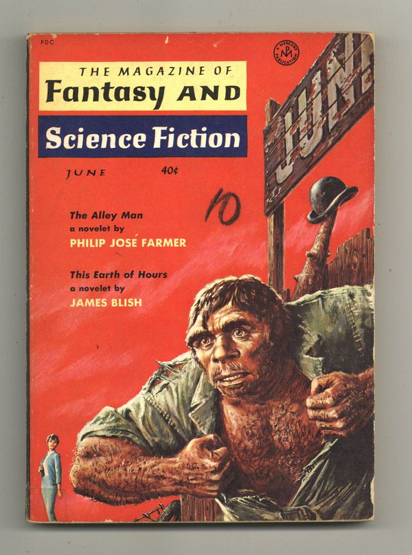 Published Jun 1959 by Mercury Publications.$36.00June 1959. Whole No. 97. Cover by Ed Emshwiller. Science fiction stories: "This Earth of Hours" by James Blish, "Science: The Planet of the Double Sun" by Issac Asimov, "Soul Mate" by Lee Sutton, "About Venus, More or Less" by Claude Cockburn, "Ferdinand Feghoot: XV" by Grendel Briarton, "Maybe We Got Something" by Josef Berger, "The Hero Equation" by Robert Arthur, "The Alley Man" by Philip Jose Farmer, "The Iowan's Curse" by Charles G. Finney, and "Production Problem" by Robert F. Young. Softcover, 5.5-in. x 7.5-in.; 130 newsprint pages, B&W. Cover price $0.40.