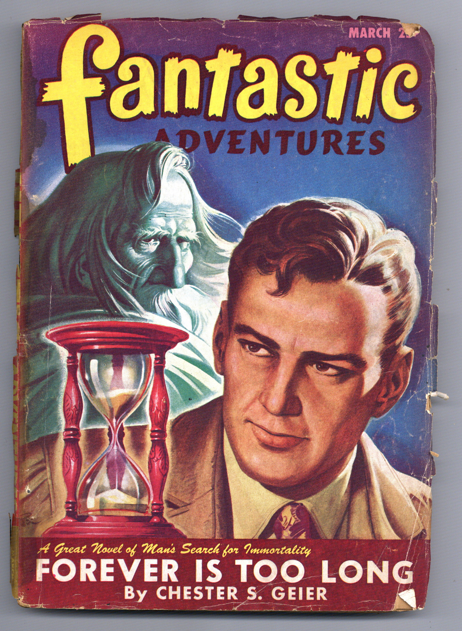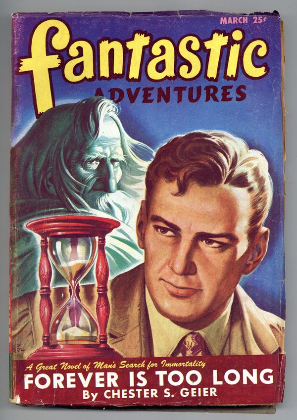 Volume 9, Issue 2 - March, 1947. Cover by Robert Gibson Jones. Stories include "Forever is too Long" by Chester S. Geier, "You Can't Scare Me" by Charles F. Myers, "Not as Plotted" by Guy Archette, "Hickson's Strange Adventure" by E. K. Jarvis, "Man of Two Worlds" by Robert Moore Williams, and "The Princess and Her Pig" by Richard S. Shaver. Illustrations by Malcolm Smith, Brady, Robert Fuqua, Church, Hinton, and Rod Ruth. 7-in. x 9.75-in.; black and white; 178 newsprint pages. Cover price $0.25.
