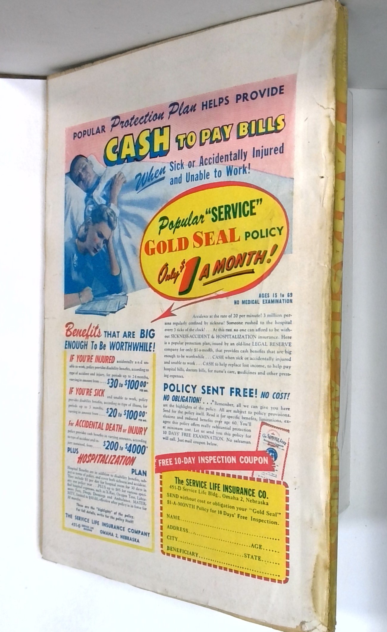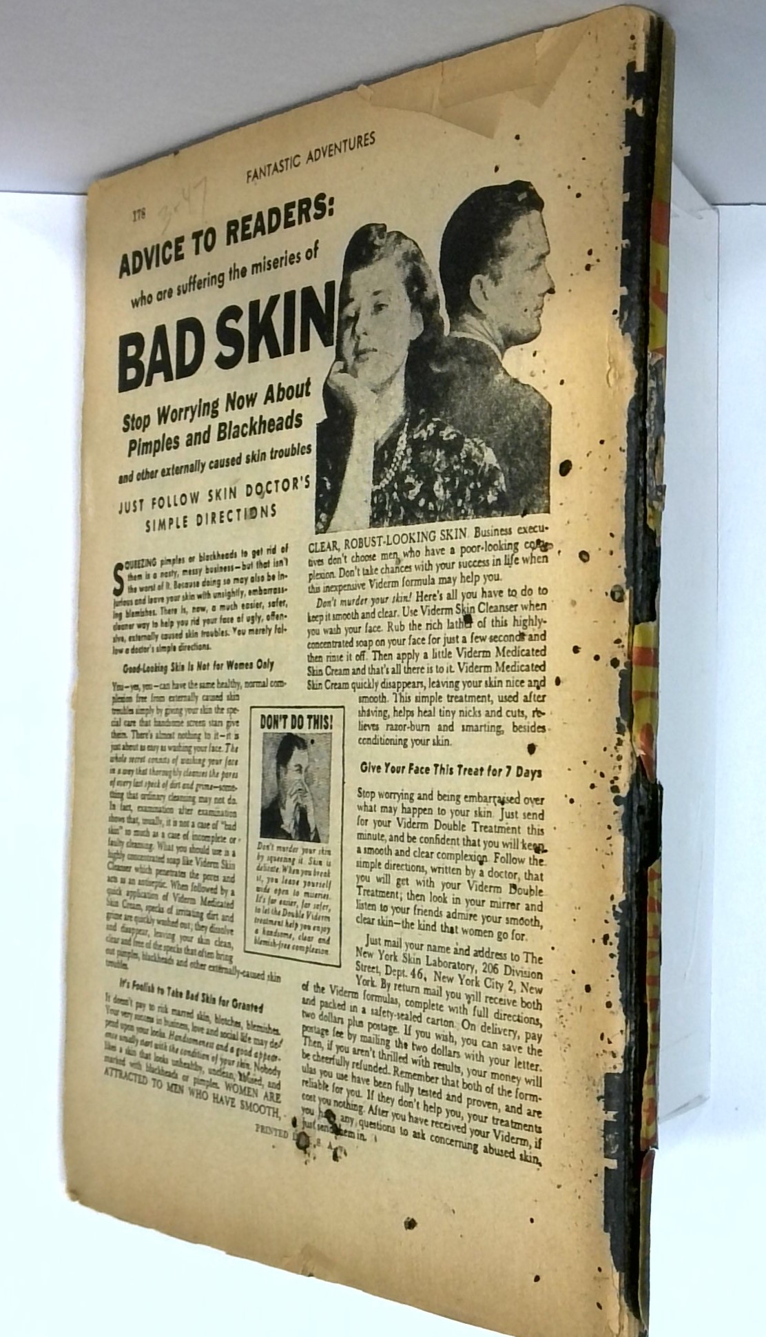 - Front cover detached 5%. Back cover detached 5%. Water damage: Moderate. Staple rust: Moderate.