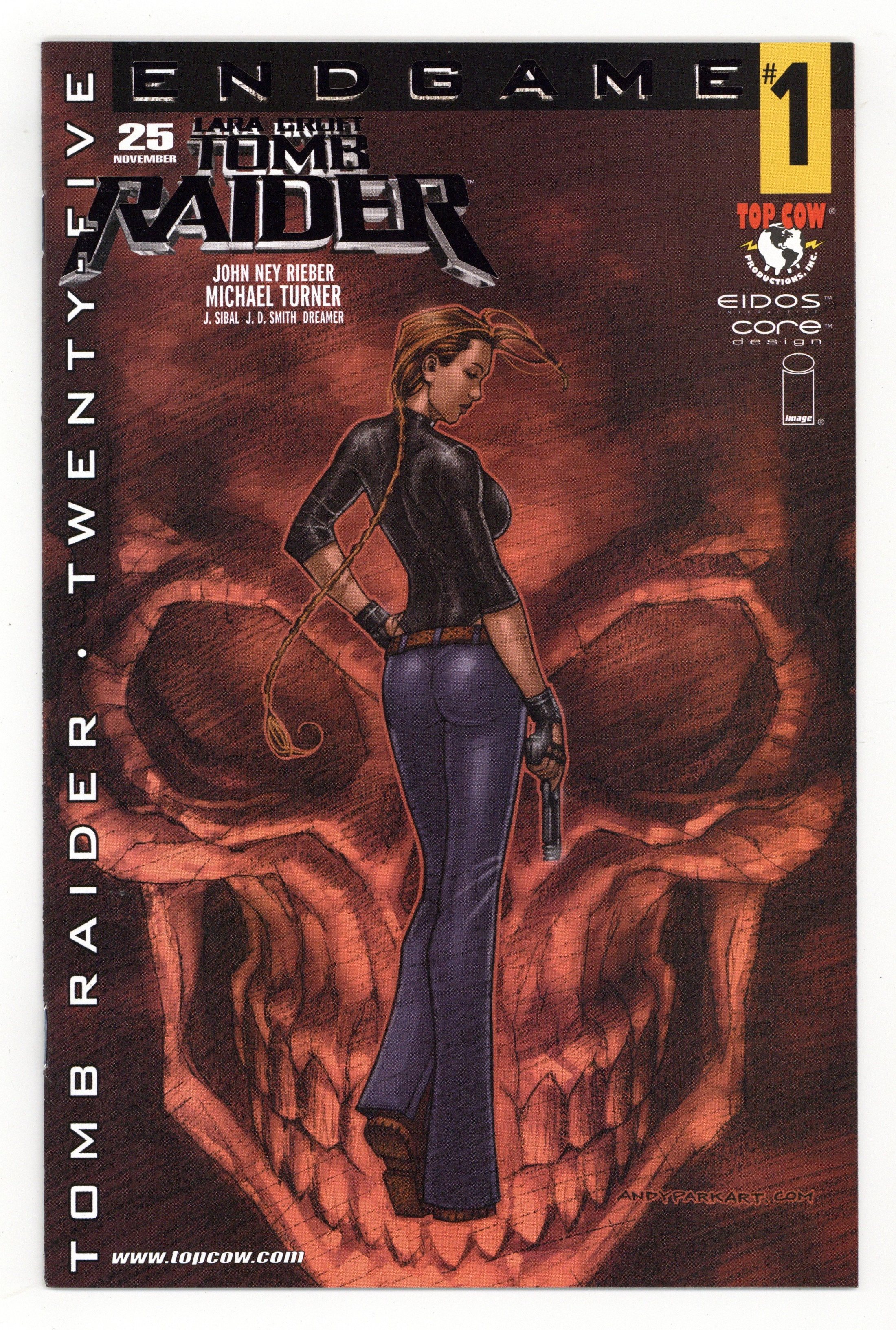 Andy Park Alternate Variant Cover with Jay Company Certificate of Authenticity. Limited to 2500 copies. (W) John Ney Rieber (P) Michael Turner (C) Jonathan D. Smith ENDGAME PART 1 (of 3) Tomb Raider's 25th issue extravaganza arrives as special guest penciler Michael Turner joins forces with John Ney Rieber to present the monumental issue of Tomb Raider as Top Cow's blockbuster ENDGAME crossover kicks off!! It all begins when the charred remains of a long-lost Native American settlement lure Lara Croft to New York City the home of Sara Pezzini and the Witchblade, and it ends with...the death of Lara Croft?!?
