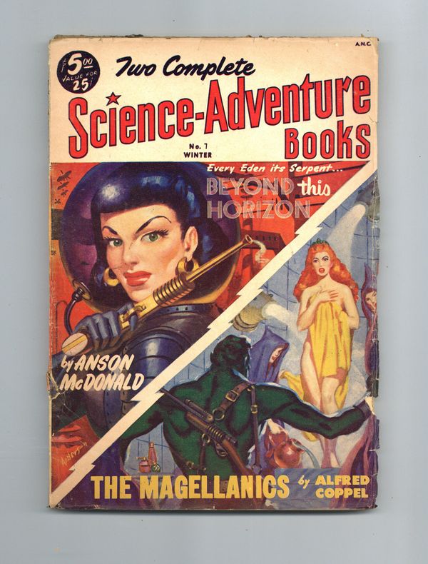 Winter 1952. Vol. 1, No. 7. Cover by Allen Anderson. Science Fiction by Robert A. Heinlein -as (Anson McDonald) "Beyond This Horizon" and Alfred Coppel "The Magellanics". 6 7/8" x 10"; black and white; 116 newsprint pages. Cover price $0.25.