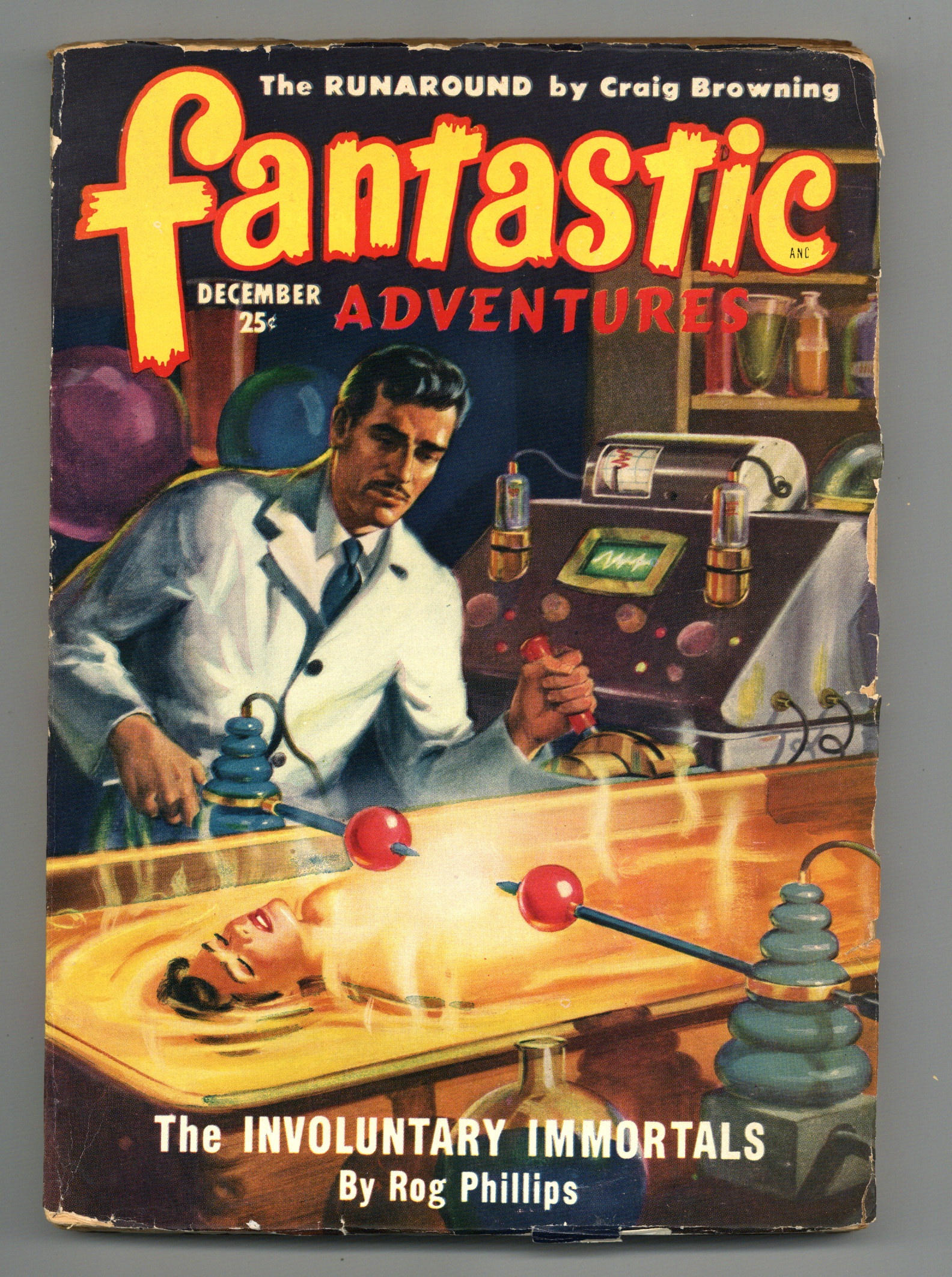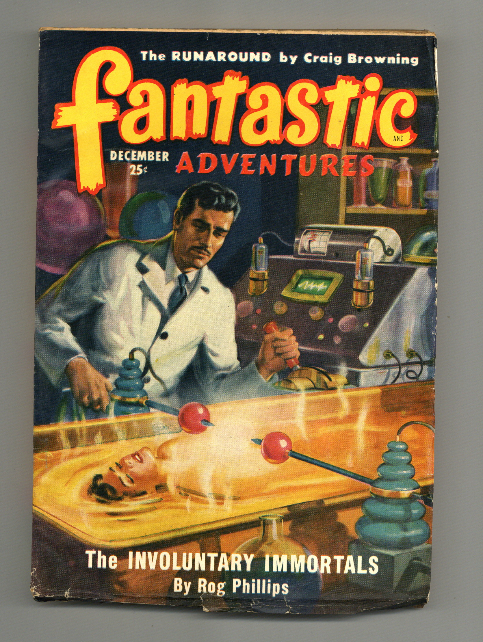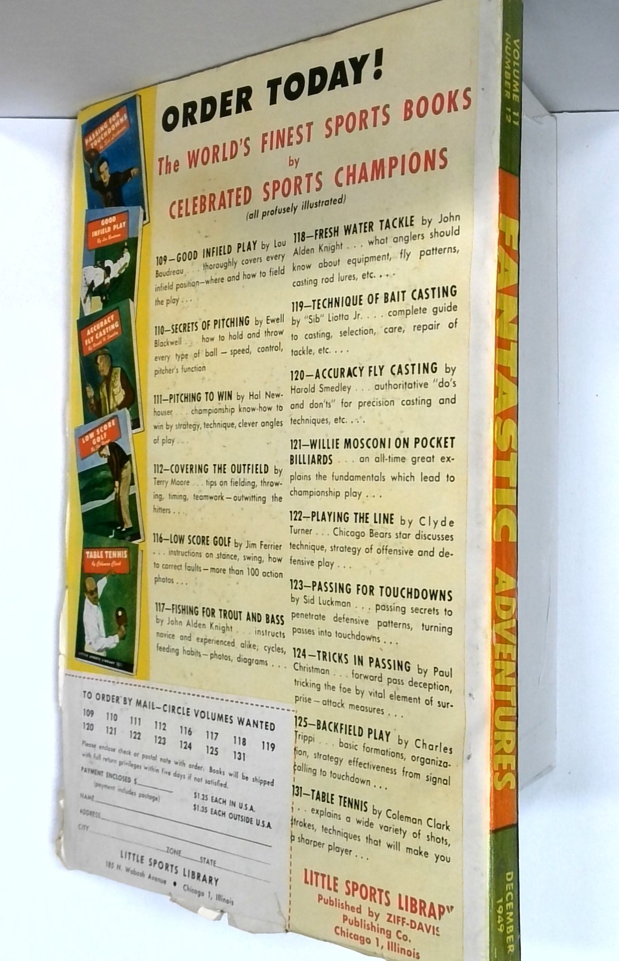 December, 1949. Cover by Edmond Swiatek. Stories by Rog Phillips "The Involuntary Immortals", Guy Archette, Craig Browning, Lester Barclay, and Charles Recour. Illustrations by Edmond Swiatek, Bill Terry, Rod Ruth, Robert Keys, and Julian S. Krupa. 7-in. x 9.75-in.; black and white; 162 newsprint pages. Cover price $0.25.