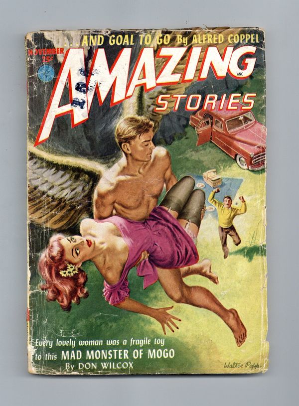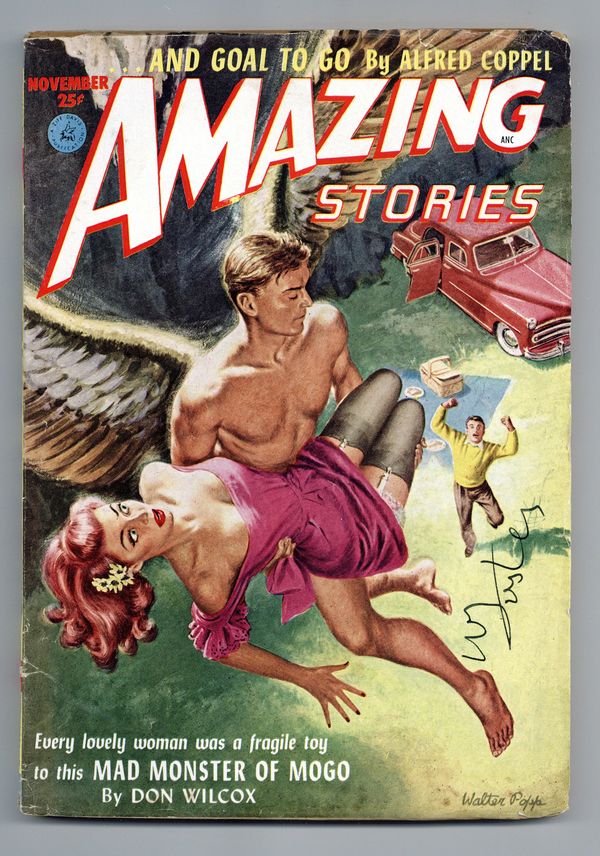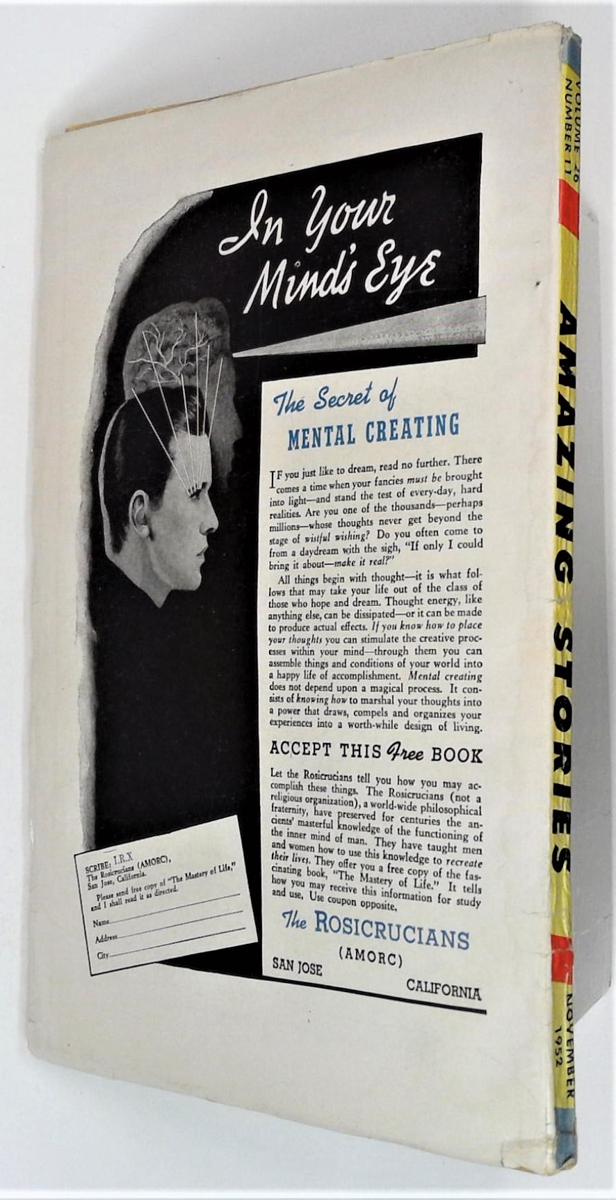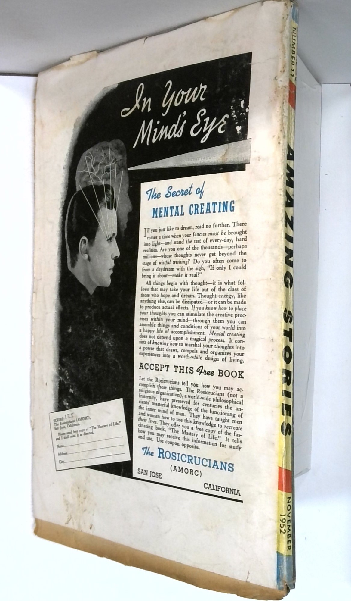 Vol. 26, No. 11. November 1952. Includes: "The Mad Monster of Mogo" by Don Wilcox; "Too Many Worlds" by Irving Cox Jr.; "Scratch One Asteroid" by Willard Hawkins; "Master of the Universe" Part 8 of 8 by Unknown; "Stacked Deck" by Lester del Rey; and "...And Goal to Go" by Alfred Coppel. Cover by Walter Popp. Two stories illustrated by Ed Emsler. 7' x 10". 160 pages. Black and white. Text with occasional illustrations. Cover price $0.25.