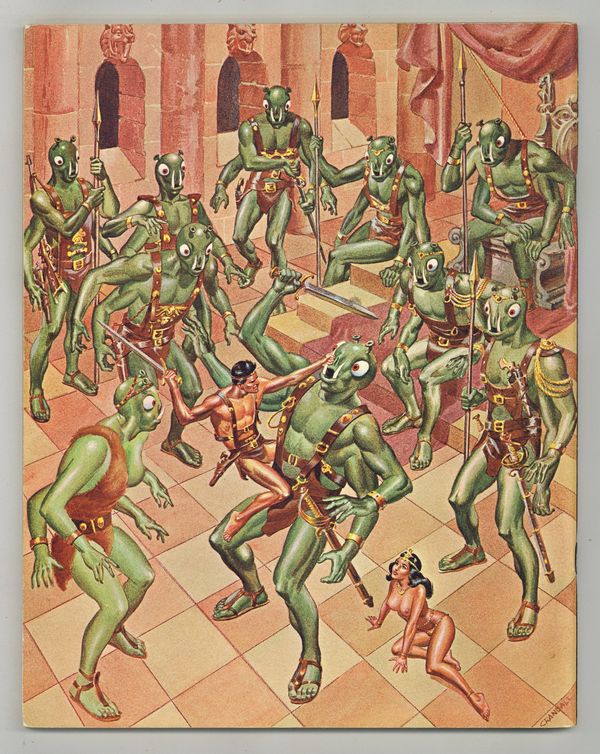 Published 1969 by Fantagraphics.$32.002nd printing, 2000 print run Al Feldstein cover. NOTE: In 1st printings the "Squa Tront" black title page bleeds through from the back side of the contents page and is a darker yellow color page than the 2nd printing.