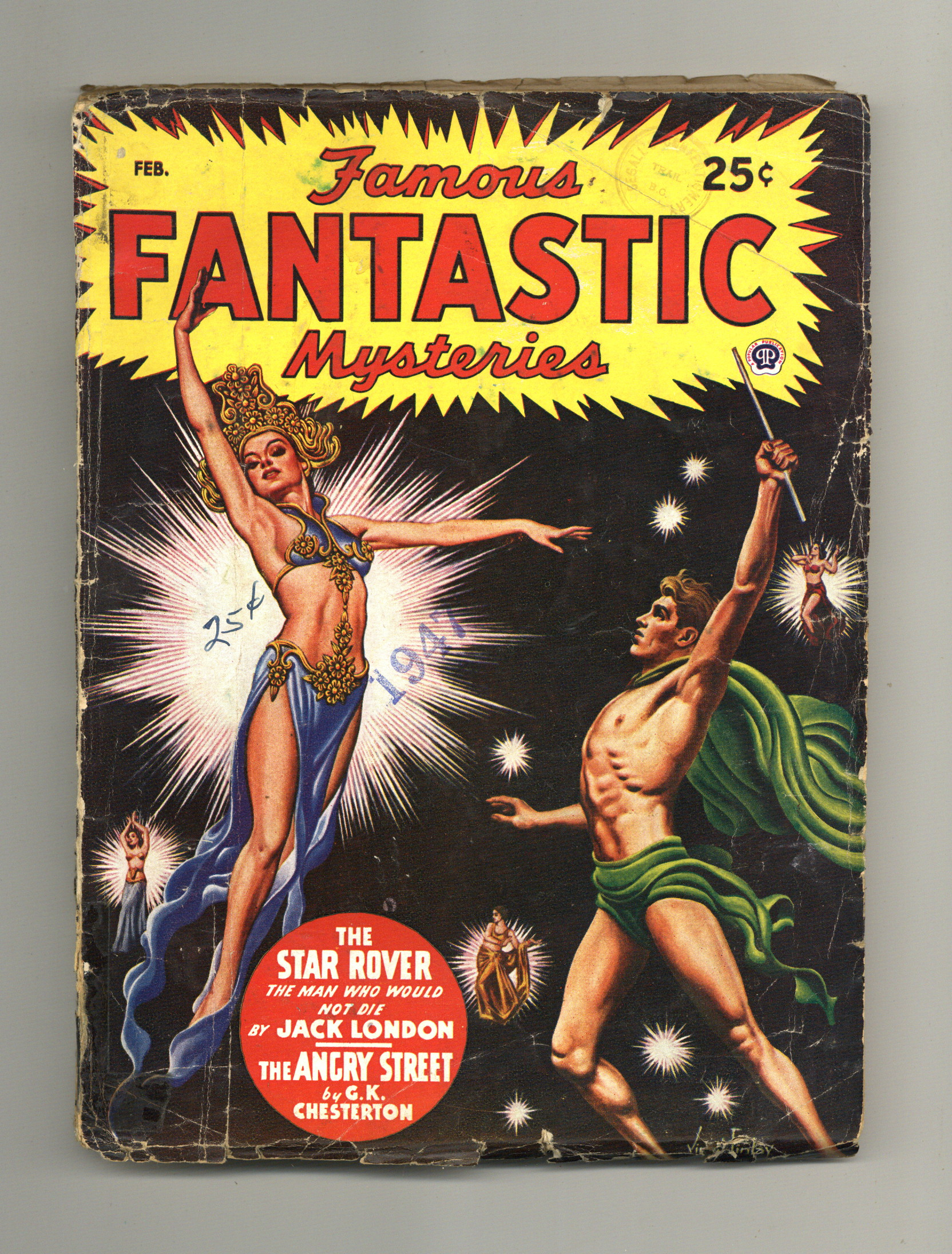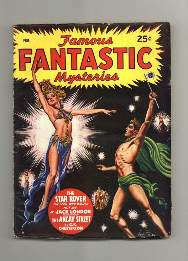 Feb 1947. Cover by Virgil Finlay. "The Star Rover" by Jack London, "The Angry Street--A Bad Dream" by G. K. Chesterton, and "The Spectre Spiders" by W. James Wintle. Interior illustrations by Virgil Finlay and Lawrence. 7-in. x 9 1/2-in.; black and white; 128 newsprint pages. Published by Popular Publications Cover price $0.25.