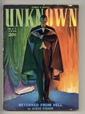 May 1939. Cover by H. W. Scott. Fantasy stories by L. Ron Hubbard ("Danger in the Dark"), Robert Bloch ("The Cloak"), Steve Fisher, H. W. Guernsey, Robert Moore Williams, Mona Farnsworth, and L. Sprague De Camp ("Divide and Rule!" part 2 of 2). Illustrations by Edd Cartier, Fisk, Gilmore, Harry Kirchner, Paul Orban, and Hubert Rogers. 6 5/8" x 9 1/4"; black and white; 160 newsprint pages. Cover price $0.20.