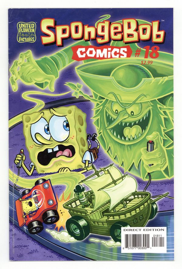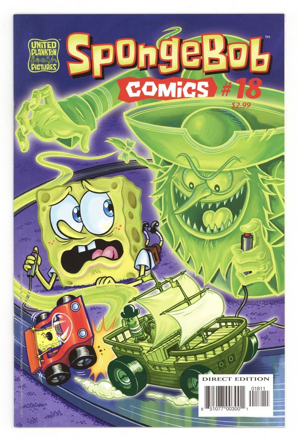 Published Mar 2013 by United Plankton Pictures.$30.00(W) David Lewman & Various (A) Gregg Schigiel & Various The latest addition to Mrs. Puff's boating school is the Flying Dutchman, and SpongeBob is terrified! Will Mrs. Puff finally be rid of her worst student? Find out in 'Driving Dutchman.' And in 'New Guy,' Patrick and SpongeBob make a friend who's a lot of fun, even if he doesn't move or talk at all! But what is his stunning secret? You'll know way before they do. Plus, underground comics legend Gary Hallgren (Air Pirates) designs cool new hot rods for the SpongeBob cast, Ramona Fradon (Metamorpho, Aquaman) draws the adventures of comic-collecting pirates, and Aaron Renier (Walker Bean, Adventure Time) provides a blazing back cover pin-up! Cover price $2.99.