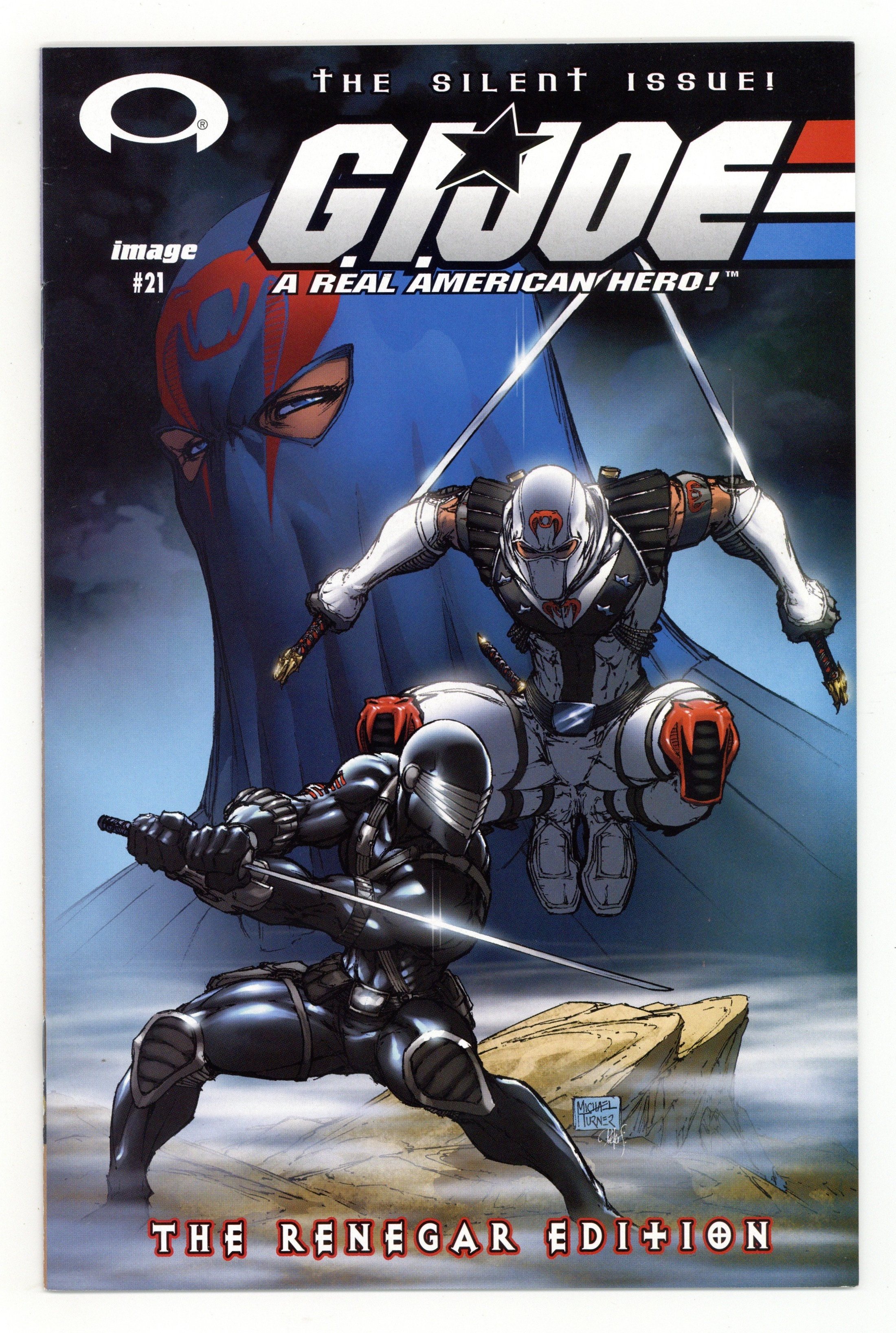 Renegar Edition without foil enhancements. (W) Josh Blaylock (P) Mike Zeck (Cover A) Mike Zeck and HI-FI (Cover B) J. Scott Campbell and Hi-Fi FC 32pp $2.95 Monthly ongoing series In stores the week of August 13th. THE CONCEPT: G.I. Joe is the code name for America's daring and highly trained special mission force. It's purpose: to defend freedom against COBRA, a ruthless terrorist organization determined to rule the world. THIS ISSUE: For the first time in over a decade! G.I.JOE goes SILENT! The events in issue twenty lead to the Snake-Eyes and Storm Shadow showdown, and MIKE ZECK is going to bring it to you. We reunite the superstar team of Zeck and inker John Beatty, to bring you what looks to be one of the most popular G.I.JOE issues in years! When Storm Shadow broke free the Cobra's mind control, Snake-Eyes, Kamakura and William rushed to help him, but they arrived seconds too late. Cobra got there first. Now, with William severely wounded, and Kamakura down for the count, it will be up to Snake-Eyes to save his friend and take out Cobra Commander.