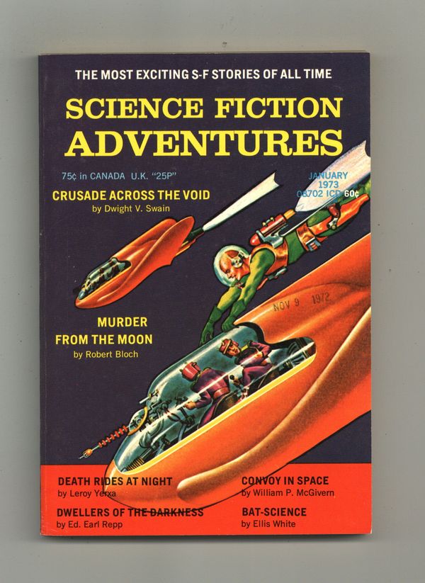 Published Jan 1973 by Ultimate Publishing Company.$12.00Not numbered. Dated January 1973. Title continues from Science Fiction Adventure Classics #7-21. Cover (Amazing Stories V16-10 reprint) by Malcolm Smith. Classic SF pulp reprint stories by Dwight V. Swain, Robert Bloch, Leroy Yerxa, William P. McGivern, and Ed Earl Repp. Cover price $0.60.