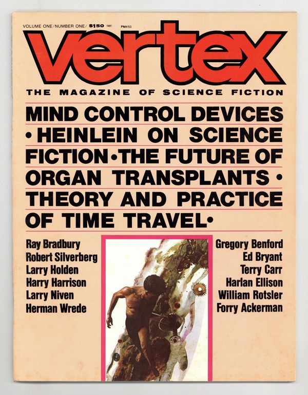 Published Apr 1973 by Mankind Publishing Compan.$15.00"The Magazine of Science Fiction." April 1973. Cover by Vincent Di Fate. SF stories by William Rotsler, Terry Carr, Ed Bryant, Robert Silverberg, Larry Holden, Harry Harrison, Herman Wrede, and Harlan Ellison ("Bleeding Stones"). An Interview with Ray Bradbury. Plus essays by Gregory Benford, James Sutherland, Charles Nuetzel, Ed Bryant, Larry Niven, & Robert A. Heinlein ("Discovery of the Future"). Illustrations by George Barr, Stevan Arnold, Alicia Austin, Vincent Di Fate, Monte Rogers, Nuttall, Albar Genesta, Tim Kirk, & Albert Nuetzel. 8.5 x 11, primarily b&w, 98 slick pages. Cover price $1.50.